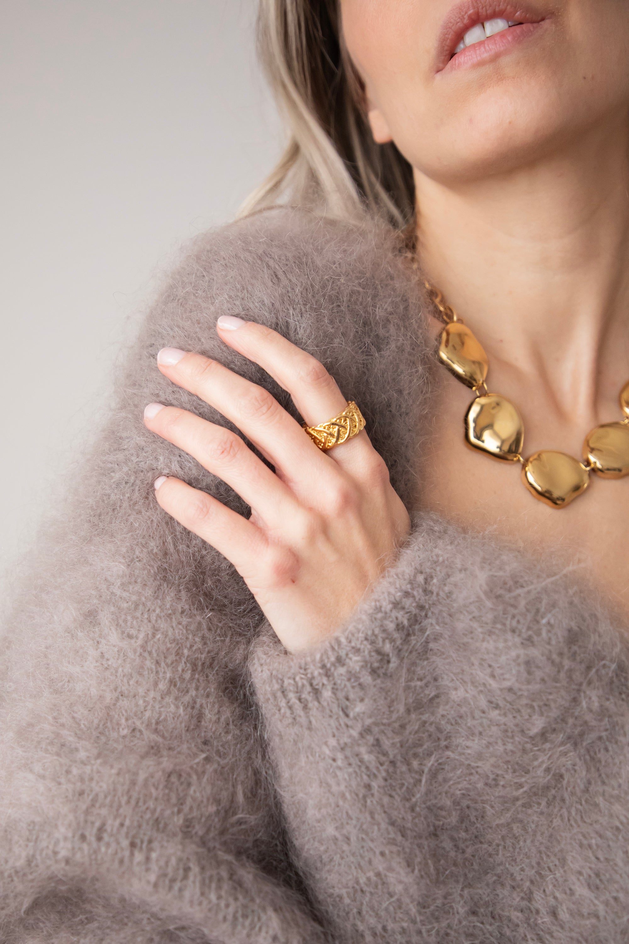 Ik draag haar het liefst bij effen, baggy sweaters, mijn favoriete combo maar ook elegant bij een een diepe halsuitsnijding van de Sibelle stuks met het Livia vest bij 🤍
