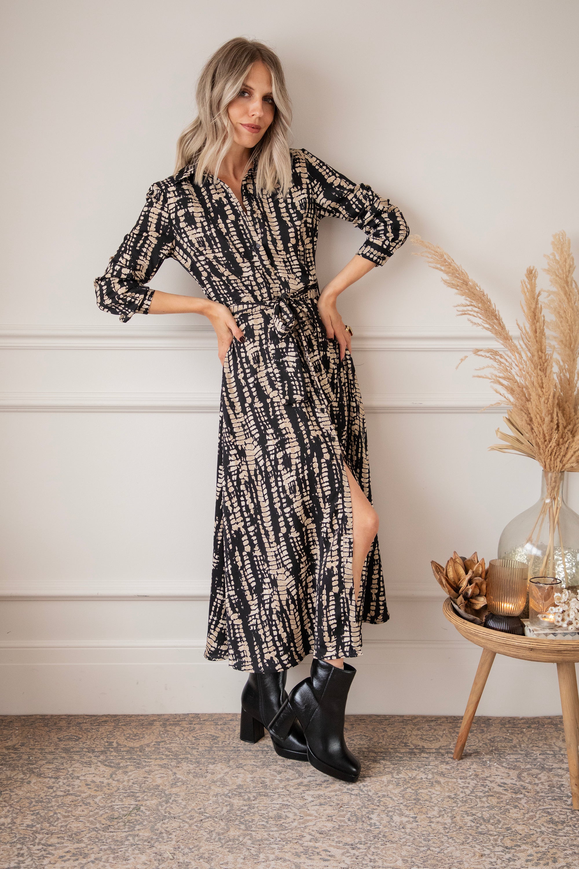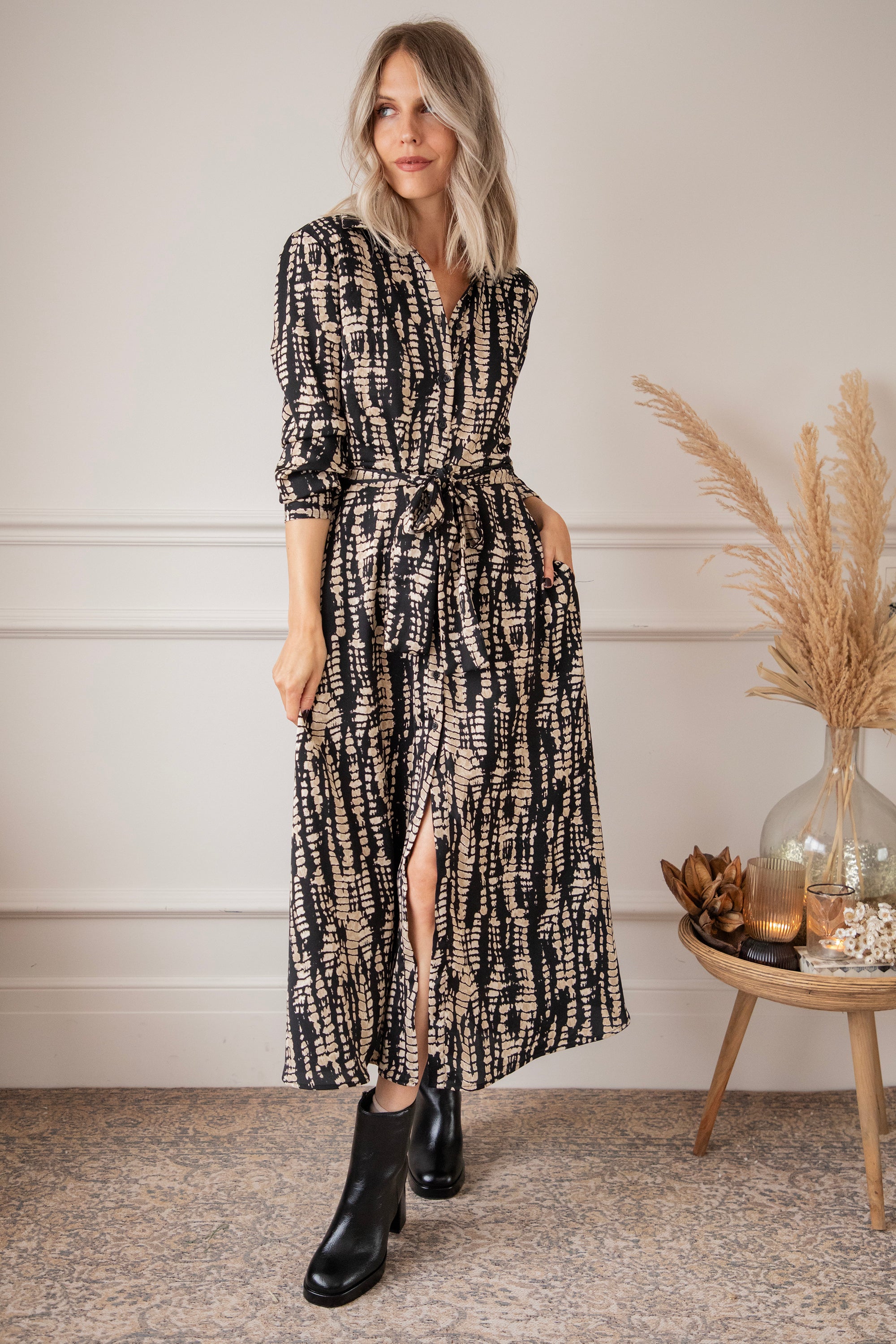 Serpentina Black/Beige - Maxi Jurk