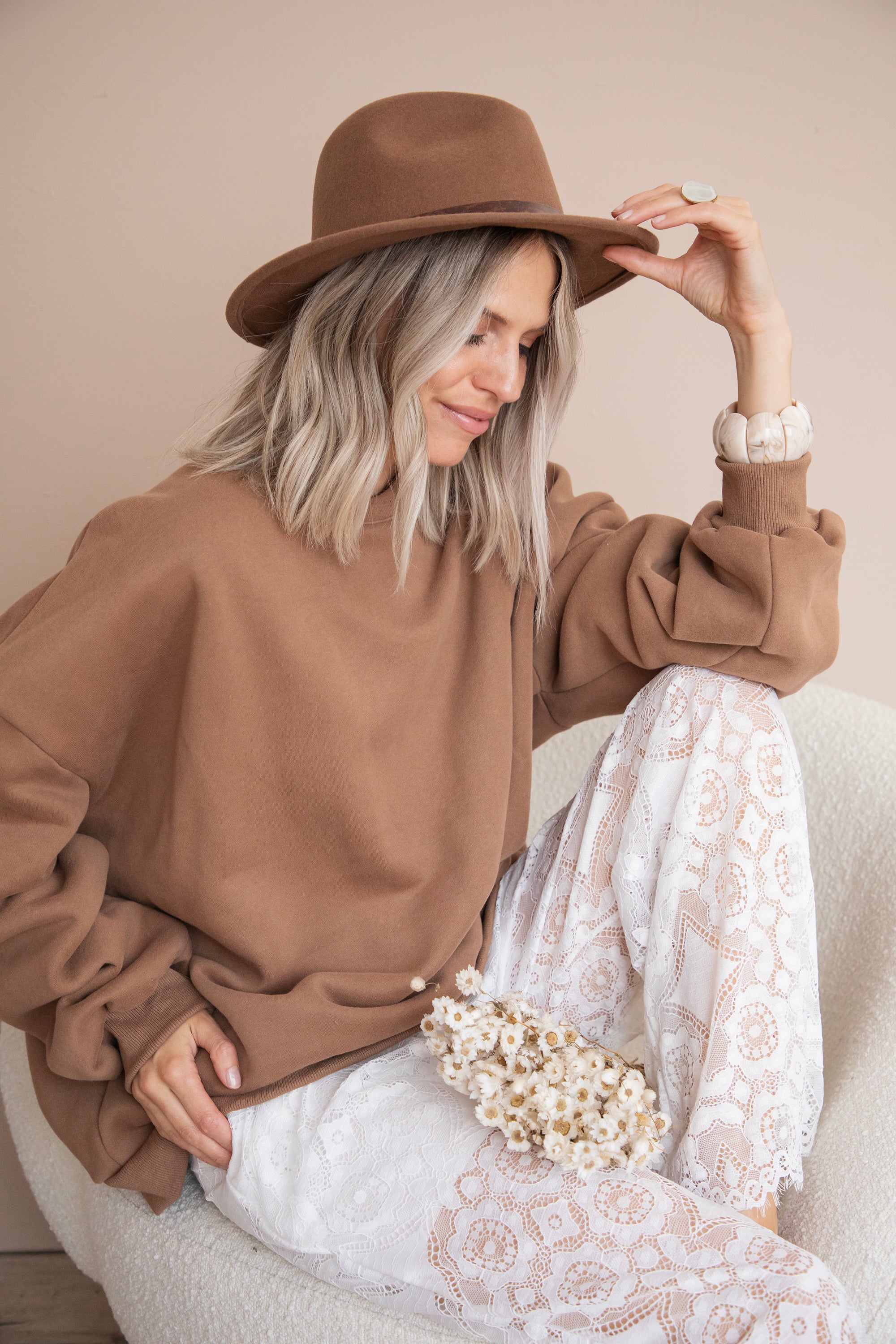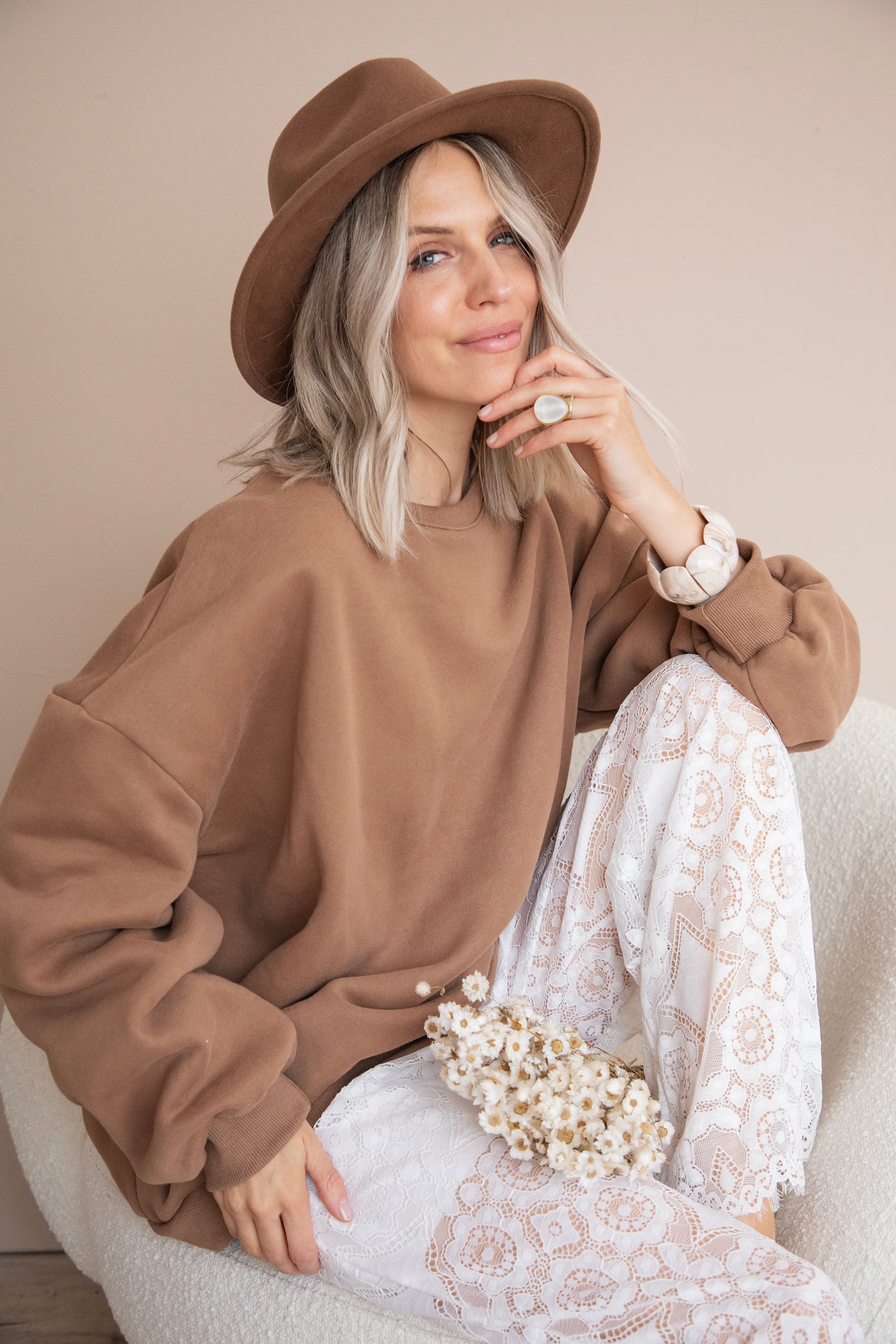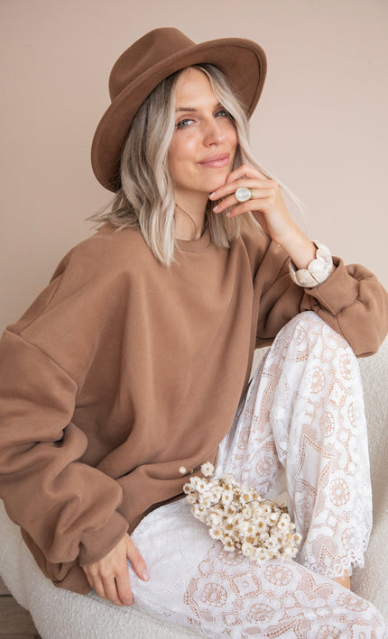 There she is again: our favorite simple sweater! Nu in extra seizoenskleurtjes 🤎 Voor mij is deze sweater mijn ultieme go to piece op een doordeweekse dag of een lazy Sunday! Samen met een wijde jeans en sneakers heb je een simpele maar oh zo fijne outfit klaar 🎀 The easier, the better! Wist je trouwens dat de binnenkant een fleece stofje heeft? Aaaahhh 😍