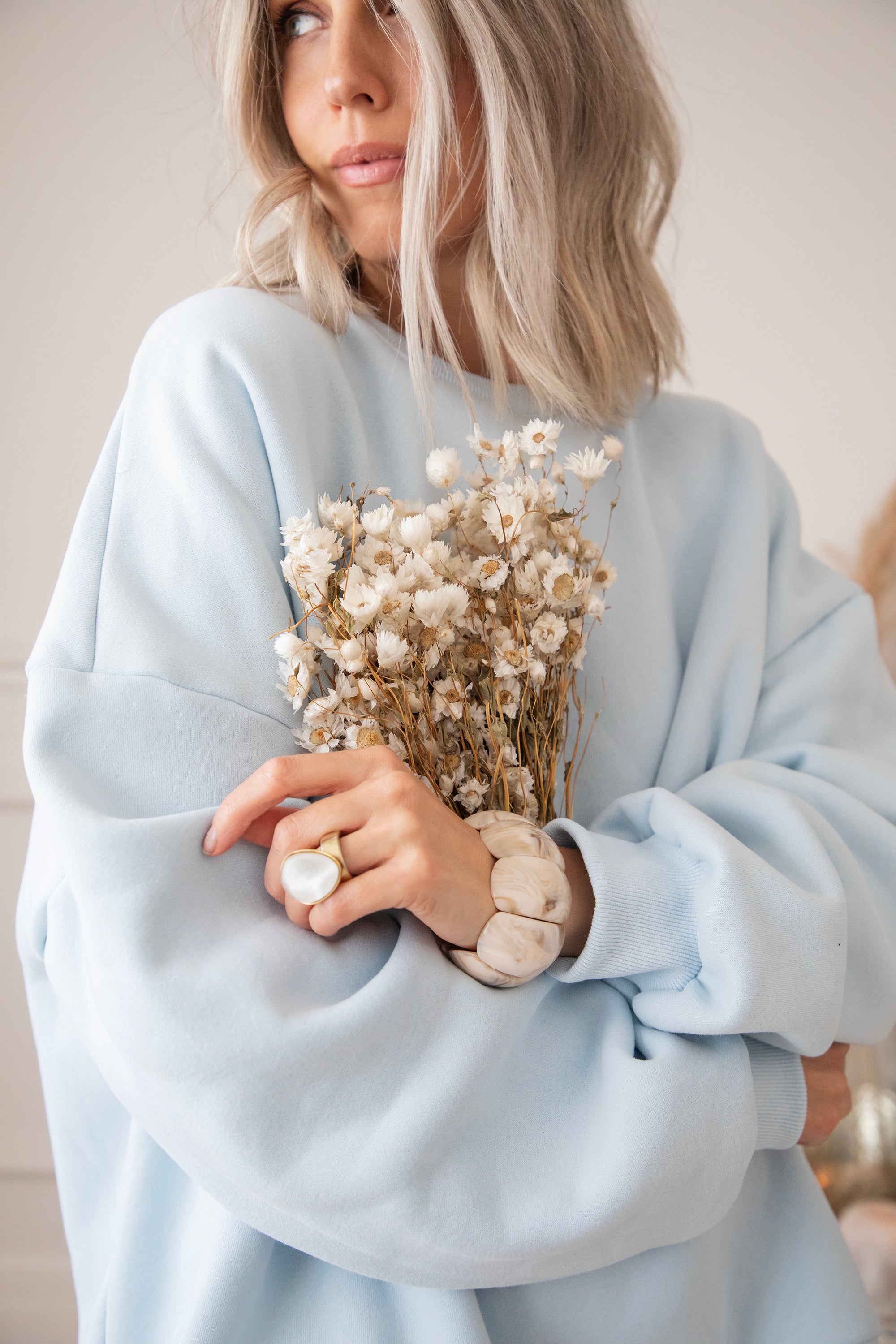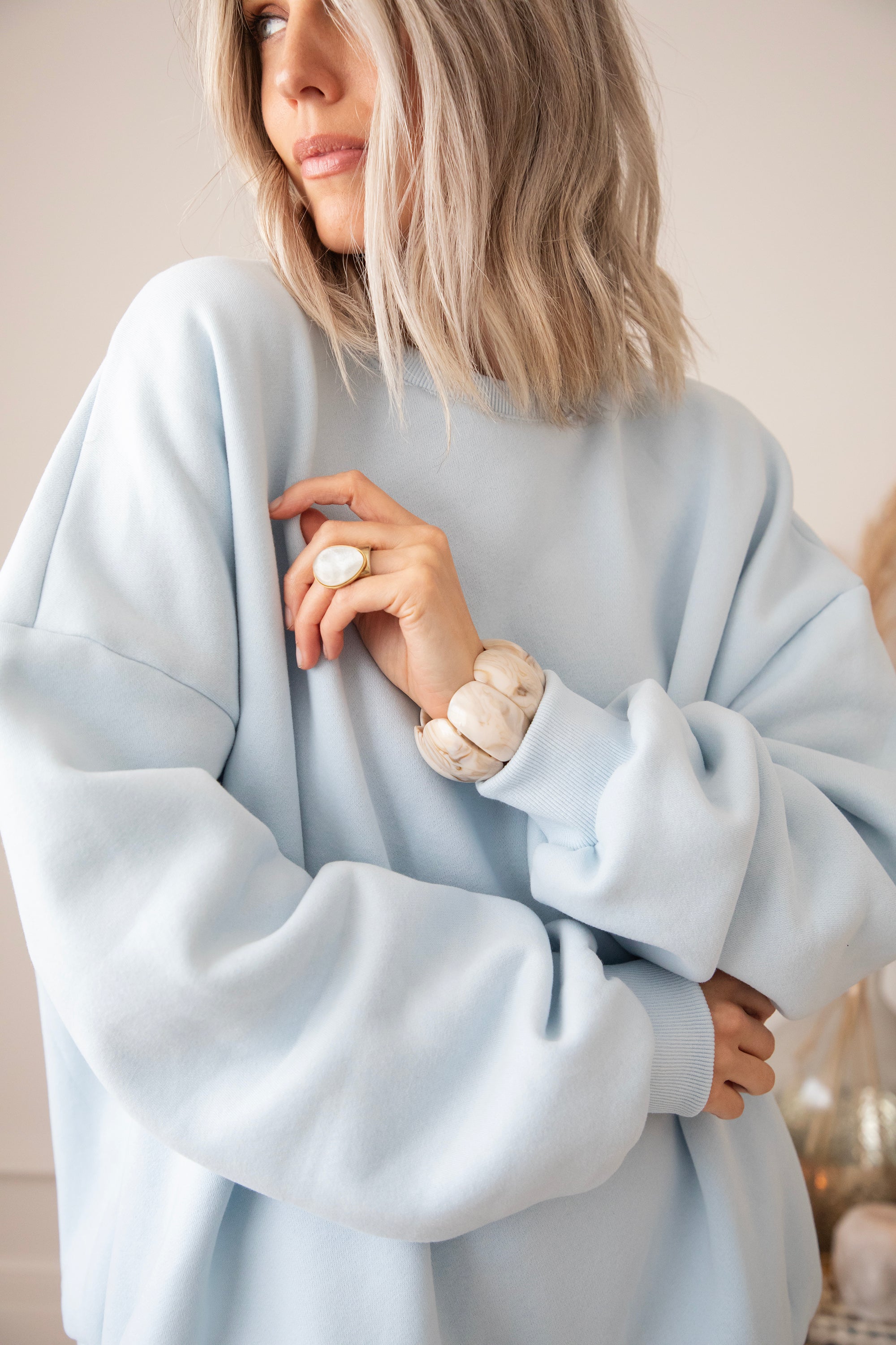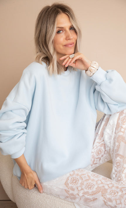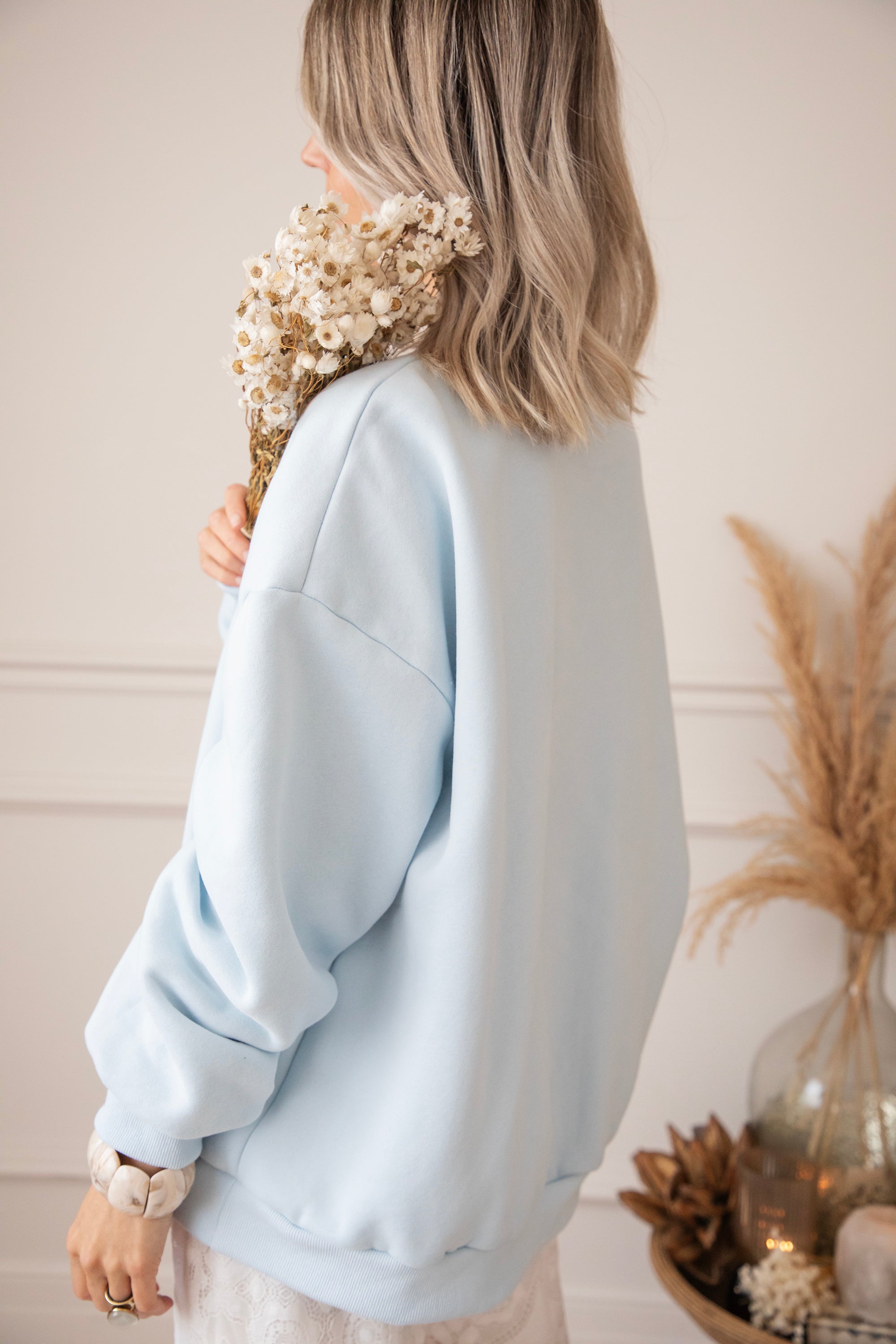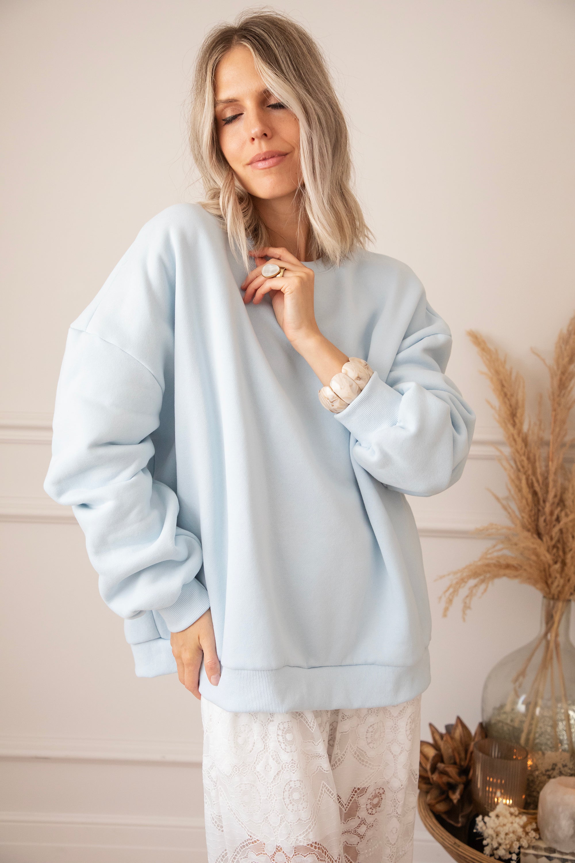 There she is again: our favorite simple sweater! Nu in extra seizoenskleurtjes 🩵 Voor mij is deze sweater mijn ultieme go to piece op een doordeweekse dag of een lazy Sunday! Samen met een wijde jeans en sneakers heb je een simpele maar oh zo fijne outfit klaar 🎀 The easier, the better! Wist je trouwens dat de binnenkant een fleece stofje heeft? Aaaahhh 😍
