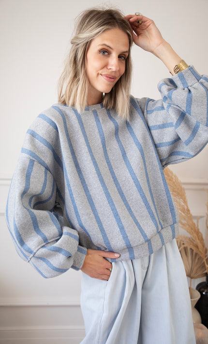 Time to snuggle up again, girls! Er zijn nieuwe kleurtjes binnen van onze ultieme bestseller sweater Snuggle Up in STRIPES! De Snuggle Up sweaters zijn onze favoriete fits, extra baggy, extra ruim en nu ook extra speels dankzij een gestreept patroon 🍡 Deze combineert grijs met blauw! 🩶🩵