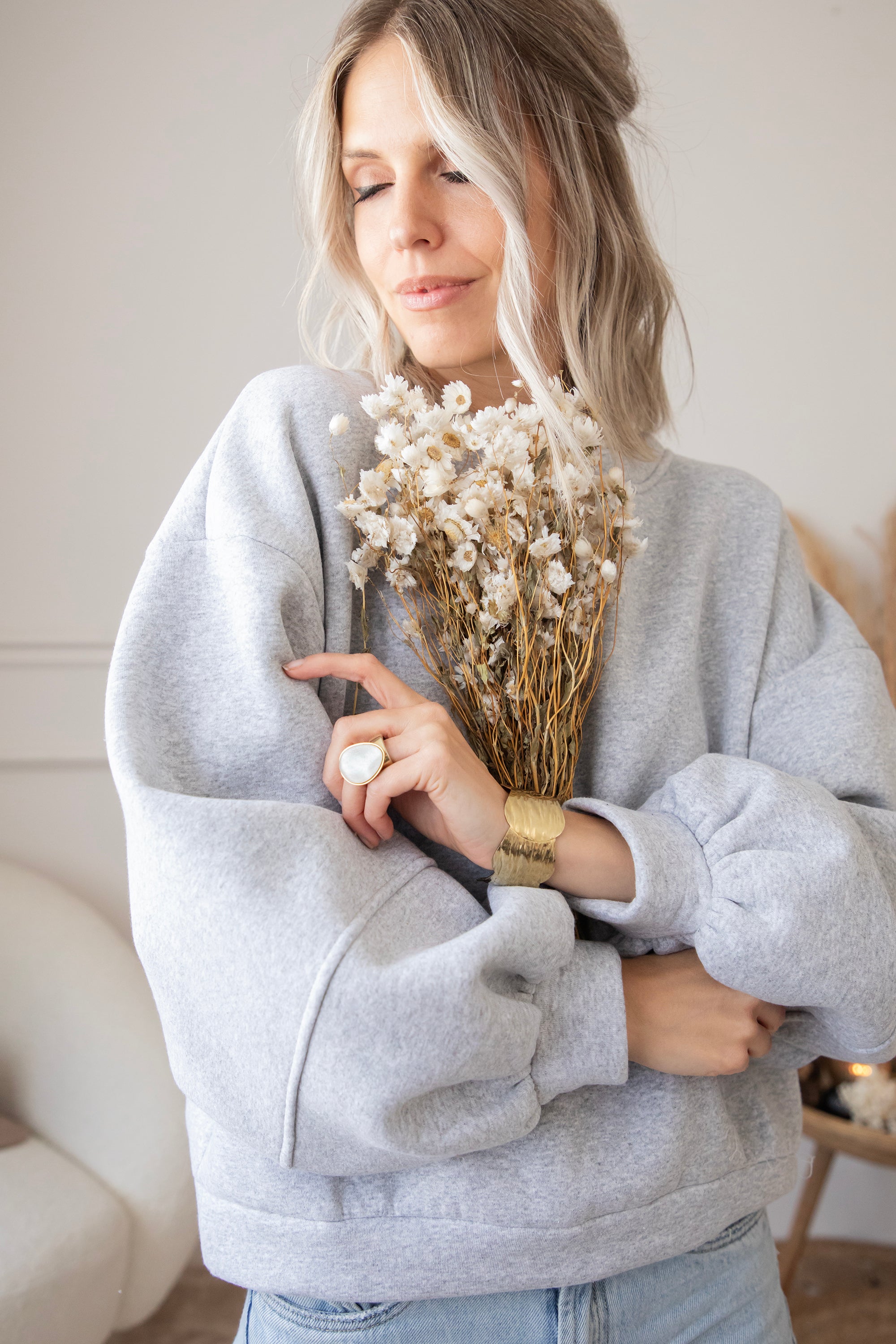 Het najaar wordt nóg beter met de Snuggle Up sweater in onze favoriete fall colors! Deze musthave is perfect voor de koudere dagen, met haar heerlijk warm fleece laagje aan de binnenkant 🎀 De baggy pasvorm en de lage schoudernaden zorgen voor een nonchalante, cozy look. En die balloon sleeves? Zo lekker oversized!
