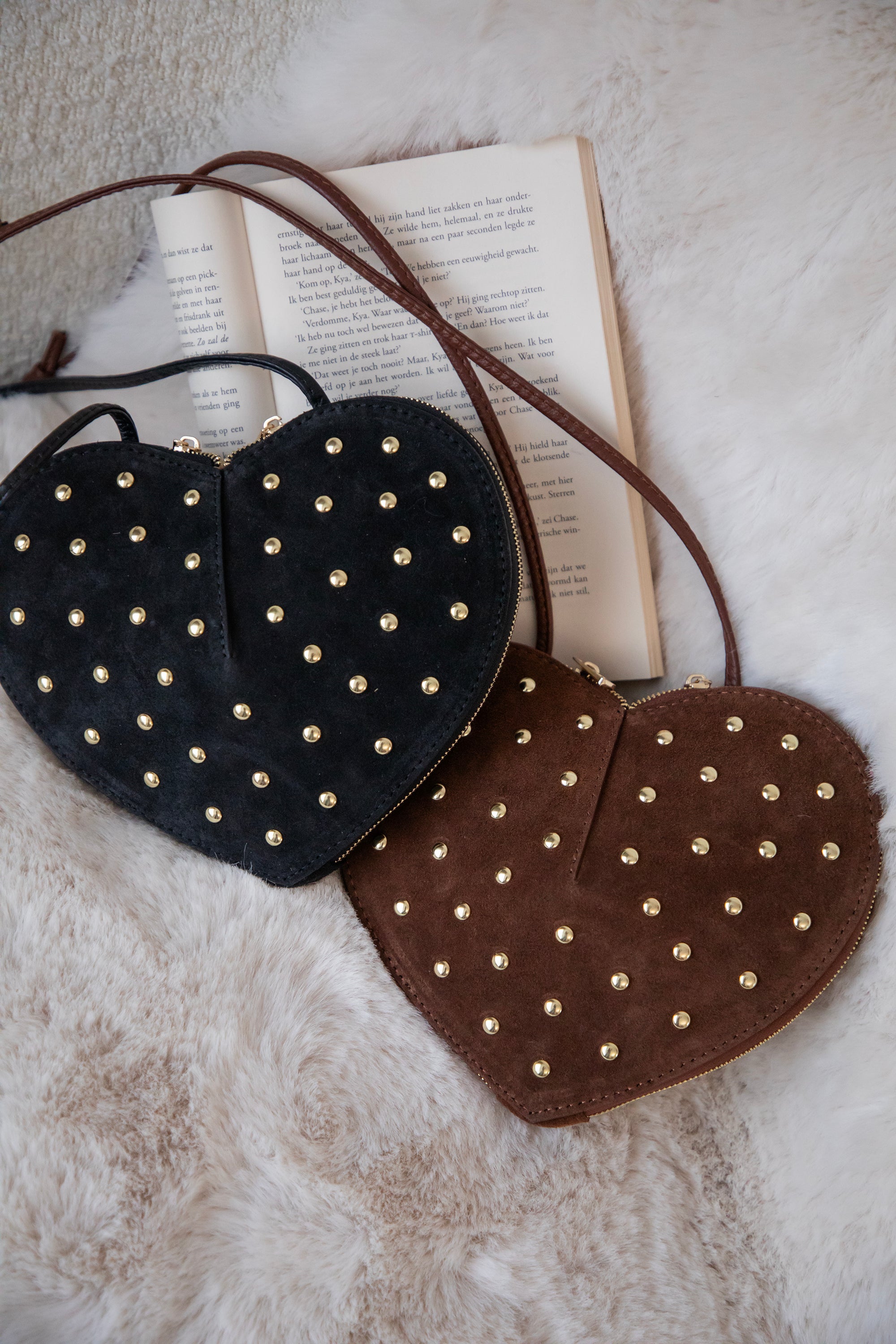 Studded Heart Suede Bag 🤎