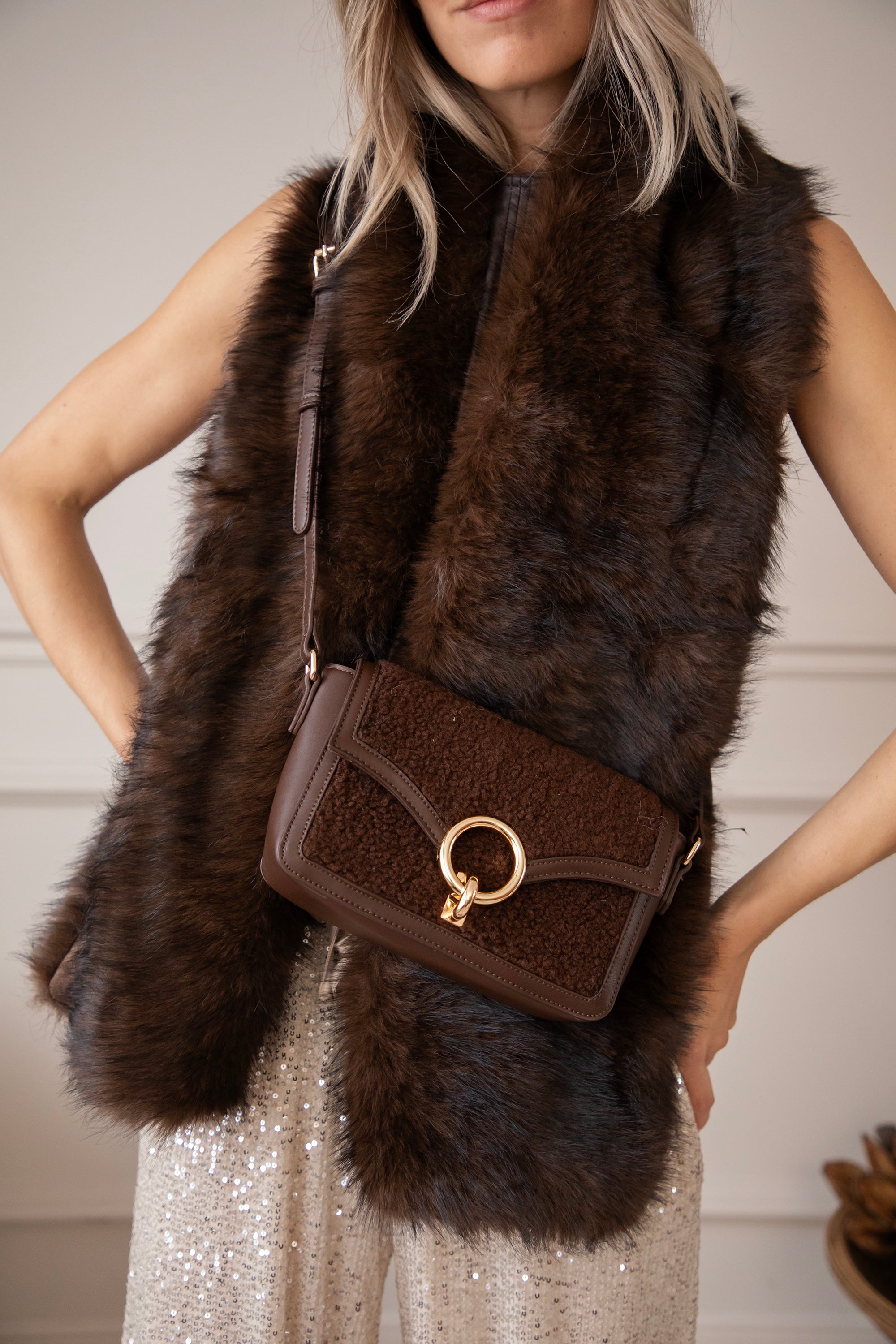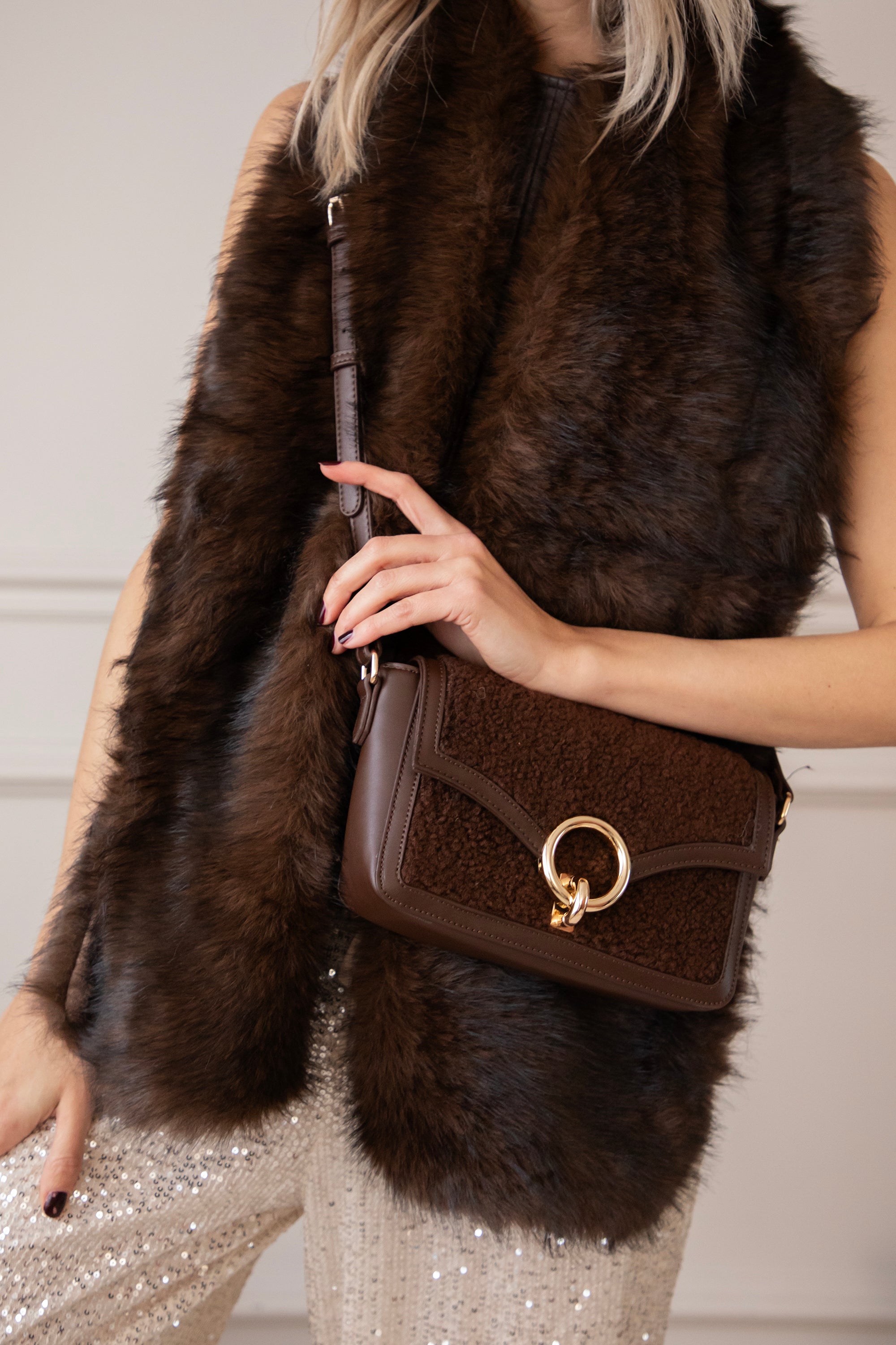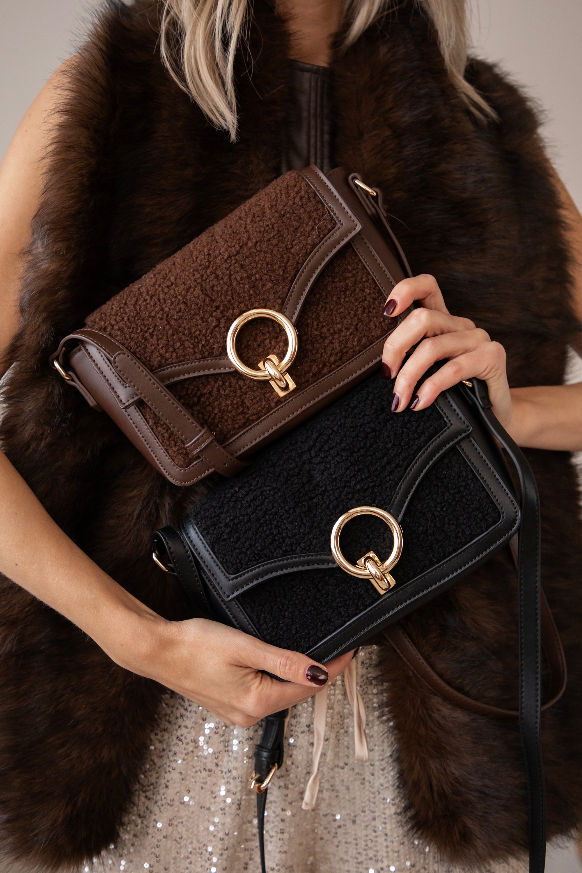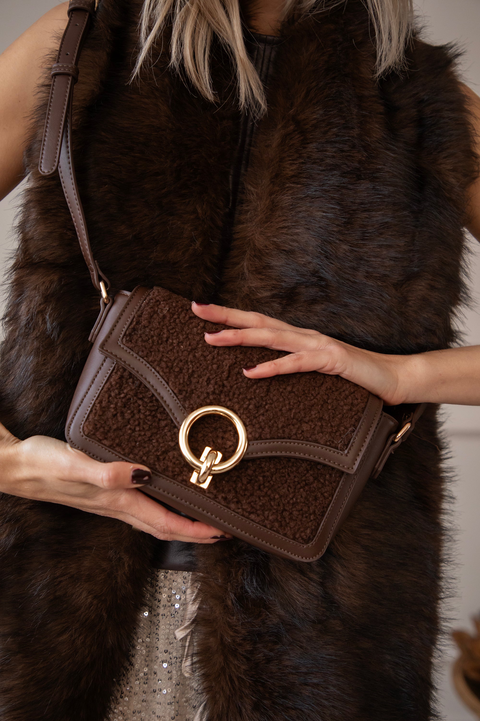 Het teddy materiaal zorgt voor die zachte, cozy uitstraling, terwijl het PU-leather net dat stoerdere, classy kantje geven. En hoe mooi is die gouden ringsluiting? Zo’n elegant detail dat het geheel meteen een beetje extra finesse geeft ✨