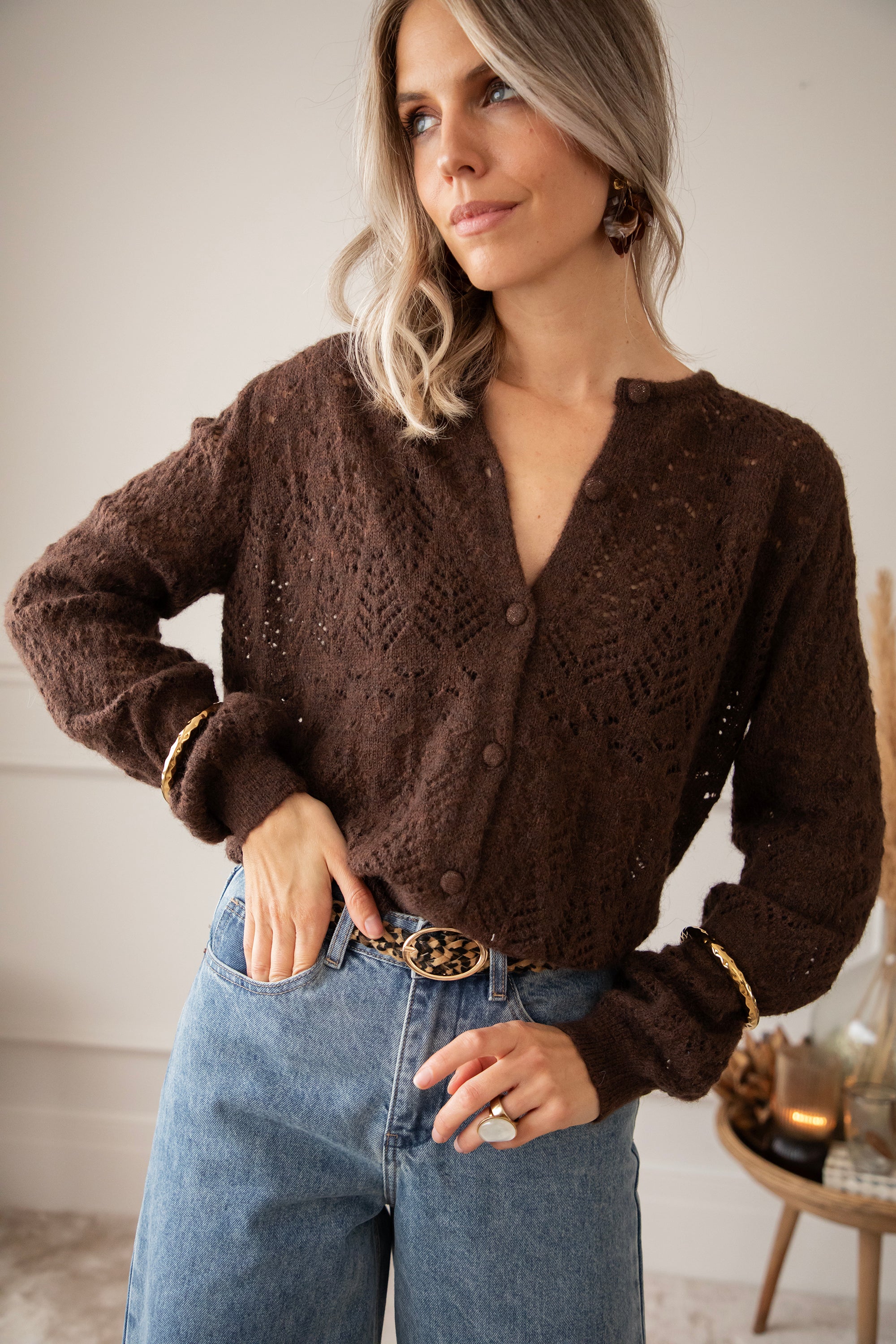 Tilly is een van onze favoriete knits ever! Ze gaat al enkele seizoenen mee 😍 Het modelletje oogt zo vrouwelijk, de opengewerkte patronen zorgen voor een leuke speelsheid en de knit voelt oh zo zacht! Je zal Tilly altijd bij ons kunnen shoppen want voor mij is het een echte ellemilla essential 🎀 Deze keer een choco kleurtje voor de cozy winter days 🤎