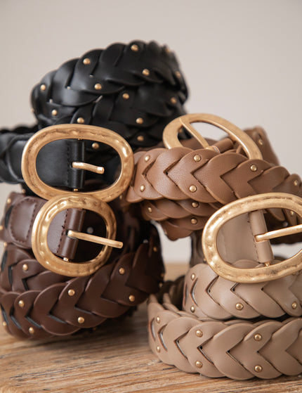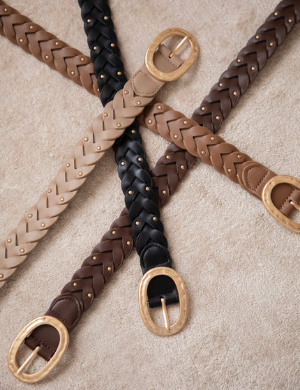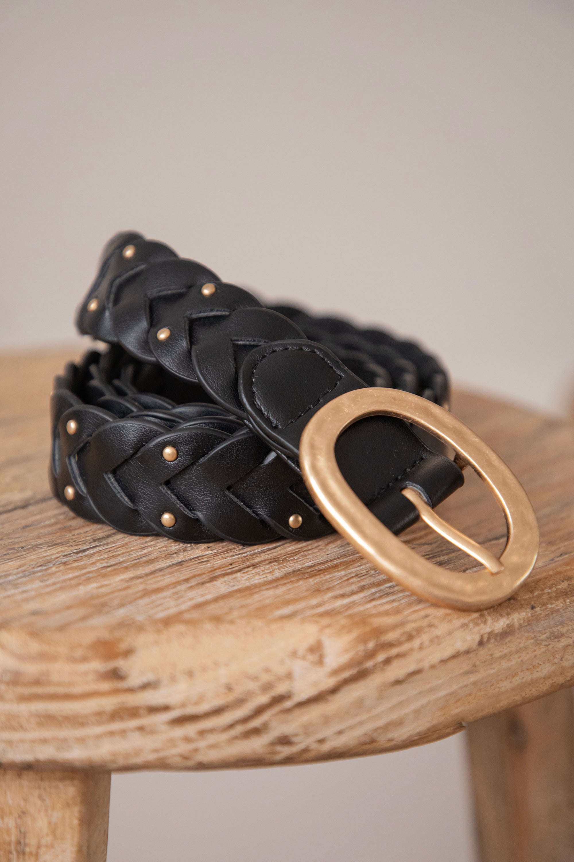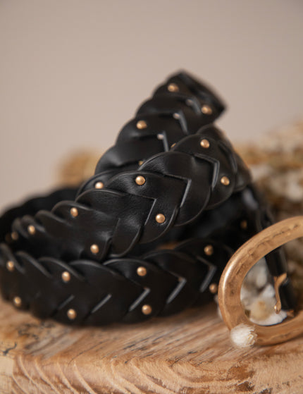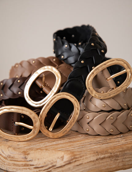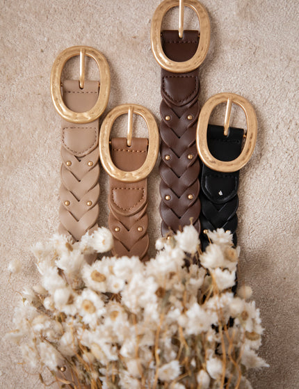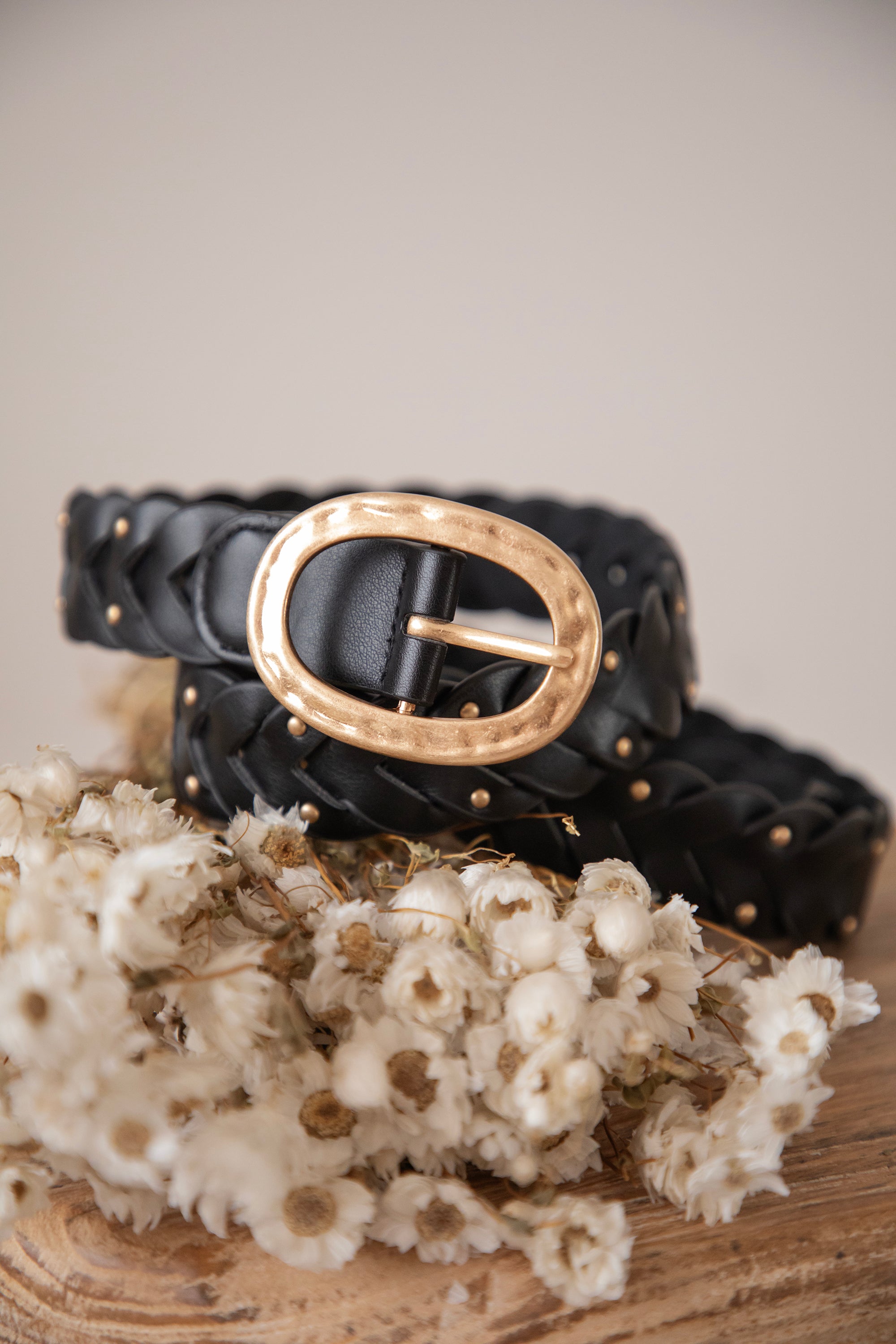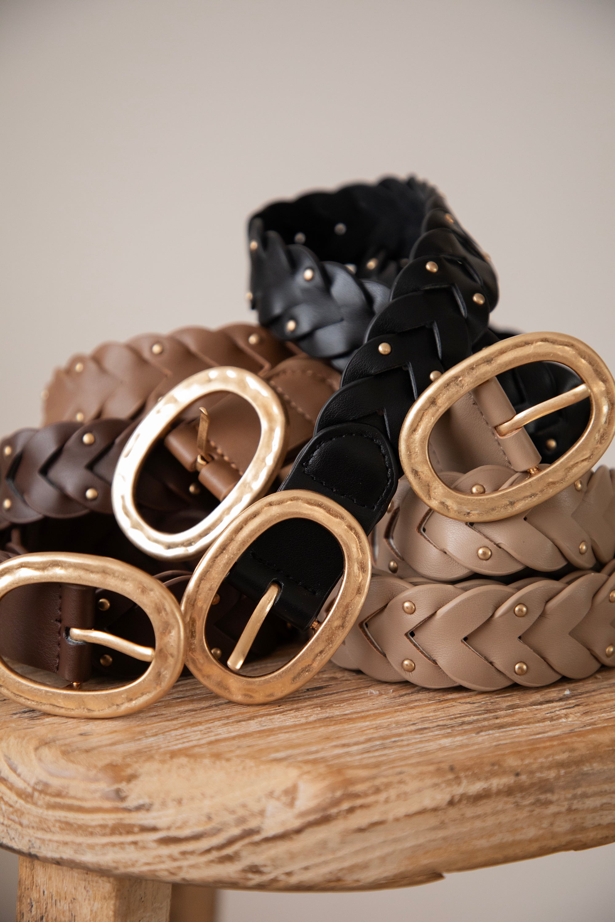 Benadruk je taille met deze super stijlvolle PU-leather gevlochten riem! ✨ Ik wou graag een riem die je gemakkelijk kan combineren... et voila! 'Touch Of Twist' is een echte combi topper door haar tijdloos design, basic kleur en classy uiterlijk 🤩 Hier en daar is de riem geaccentueerd met twee kleine gouden studs, een leuk extraatje!