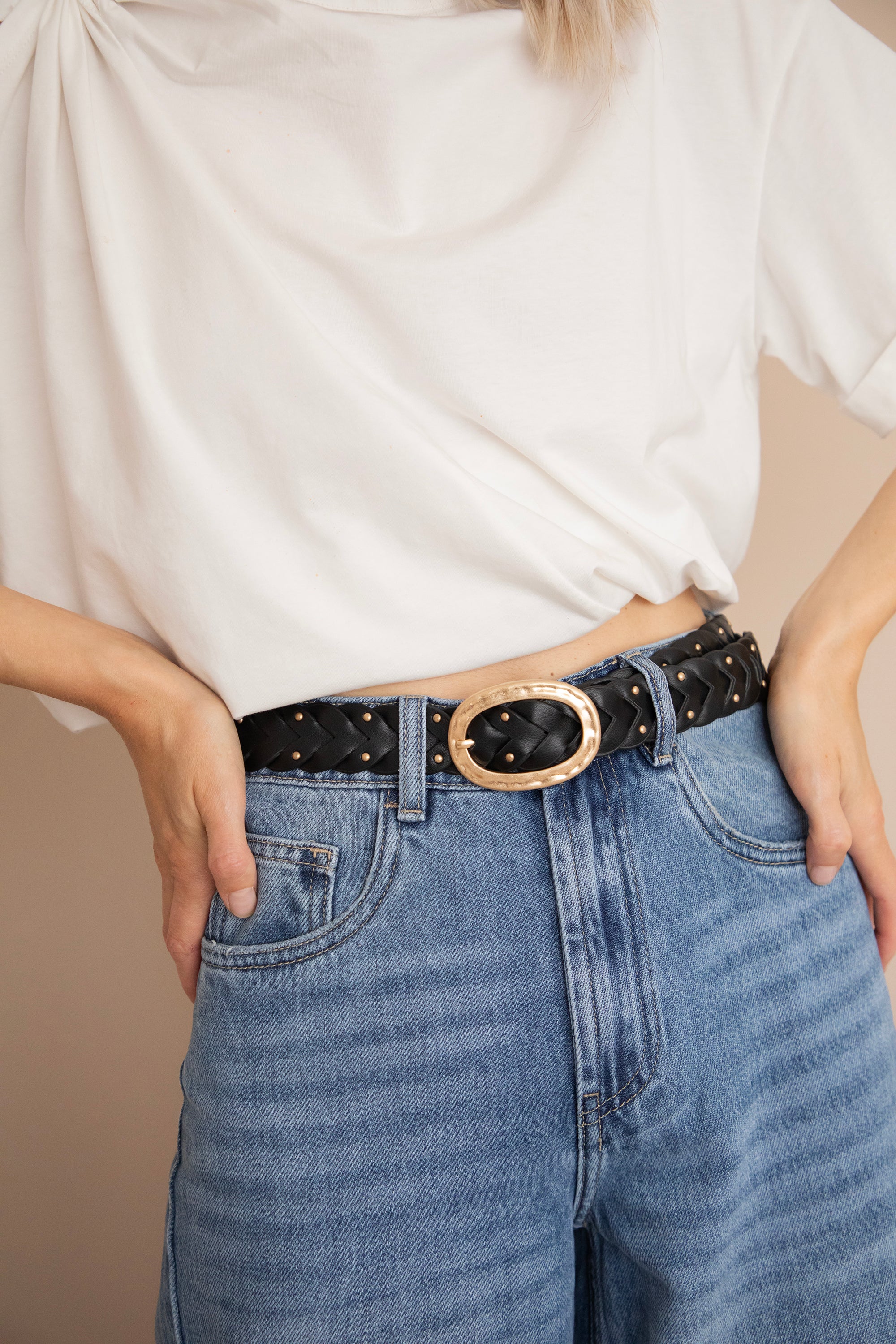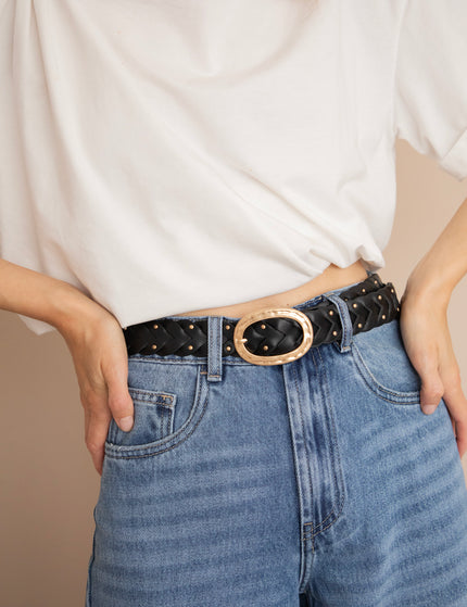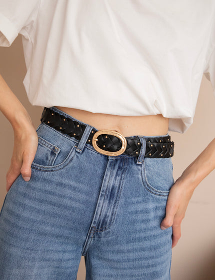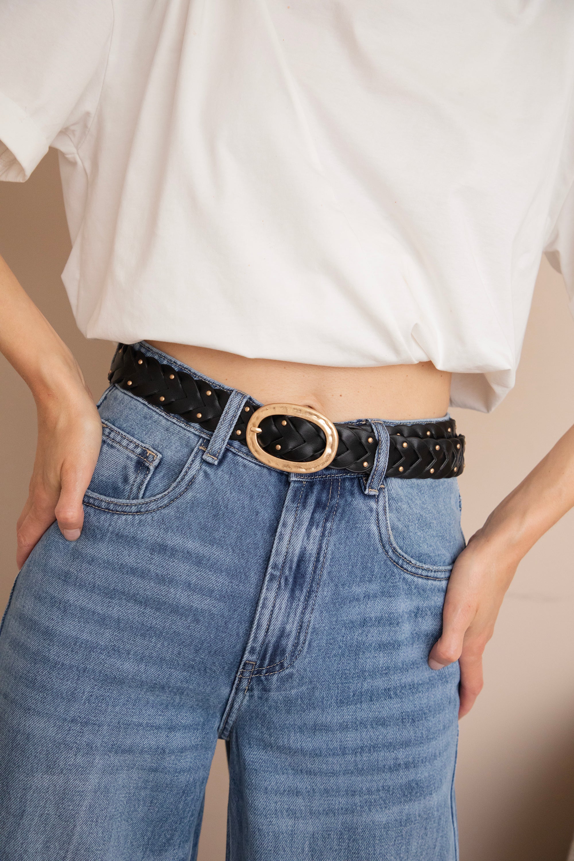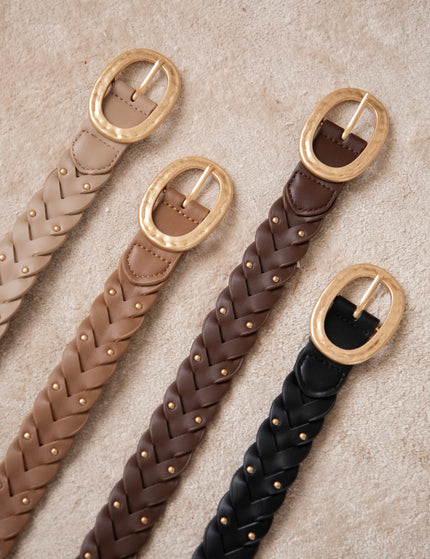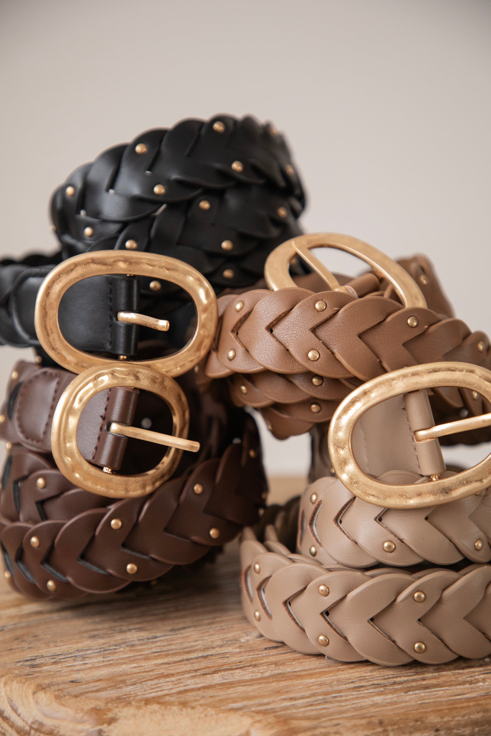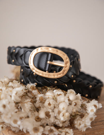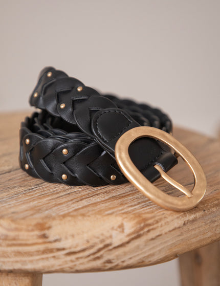 Benadruk je taille met deze super stijlvolle PU-leather gevlochten riem! ✨ Ik wou graag een riem die je gemakkelijk kan combineren... et voila! 'Touch Of Twist' is een echte combi topper door haar tijdloos design, basic kleur en classy uiterlijk 🤩 Hier en daar is de riem geaccentueerd met twee kleine gouden studs, een leuk extraatje!