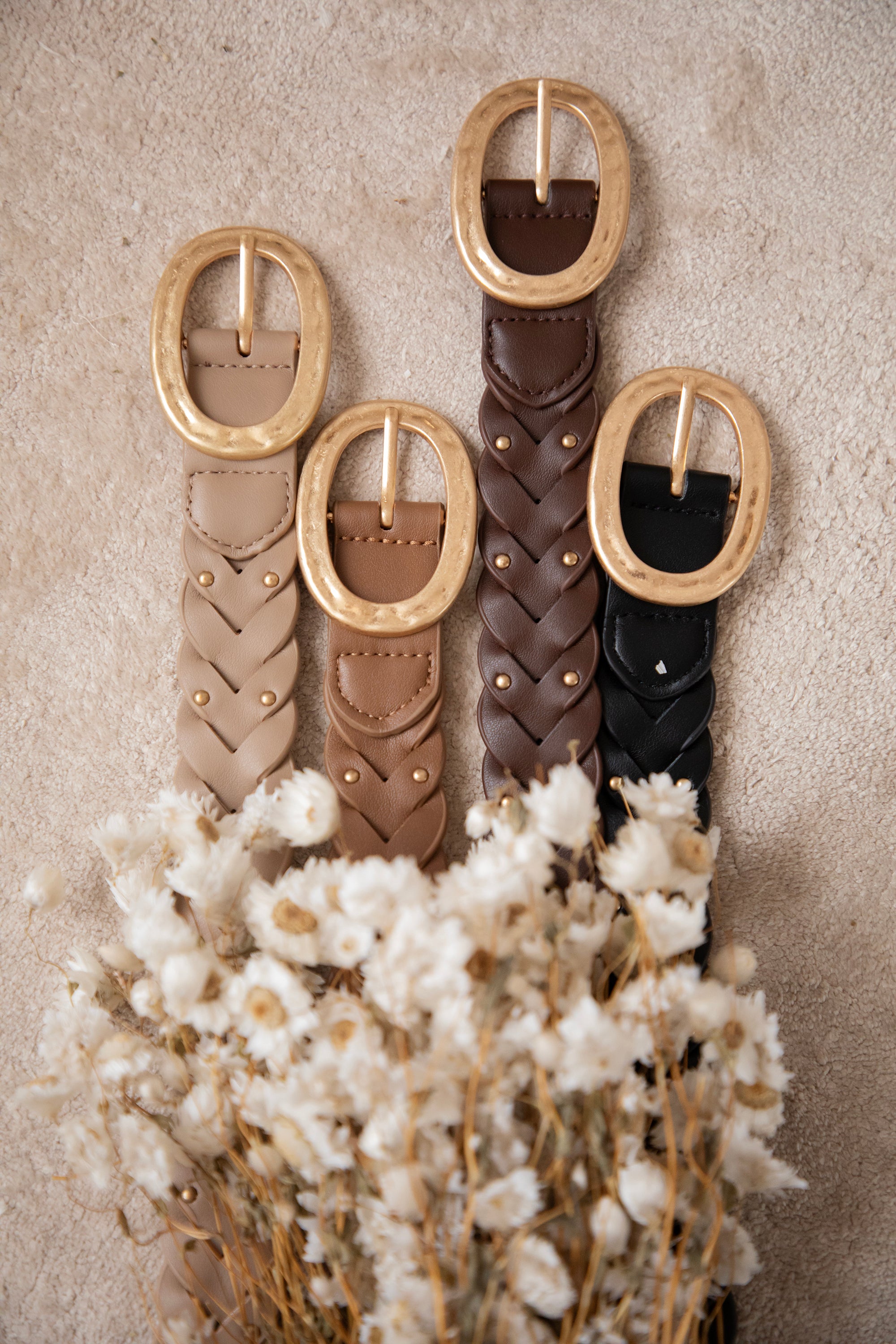 Gevlochten riemen zijn super gemakkelijk... ongeacht welke taille je hebt, ze passen ALTIJD! Dat komt omdat je het pinnetje overal kan door steken! Ze zorgt ervoor dat je een mooi zandloperfiguur krijgt als je 'm in de taille draagt over je sweater dress of jurkje! Je kan 'm ook perfect doorheen de riemlussen van je jeans dragen 👌🏻