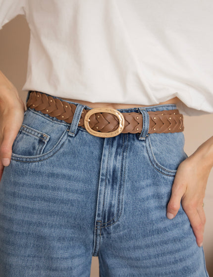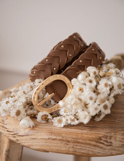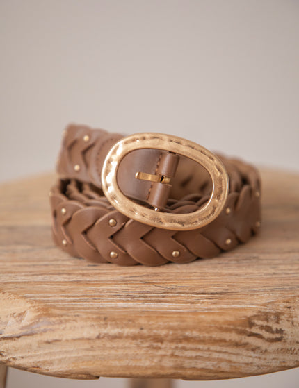Benadruk je taille met deze super stijlvolle PU-leather gevlochten riem! ✨ Ik wou graag een riem die je gemakkelijk kan combineren... et voila! 'Touch Of Twist' is een echte combi topper door haar tijdloos design, basic kleur en classy uiterlijk 🤩 Hier en daar is de riem geaccentueerd met twee kleine gouden studs, een leuk extraatje!