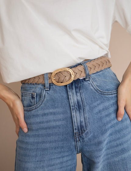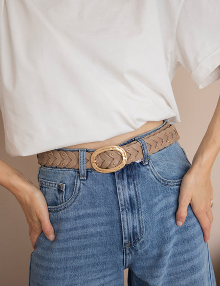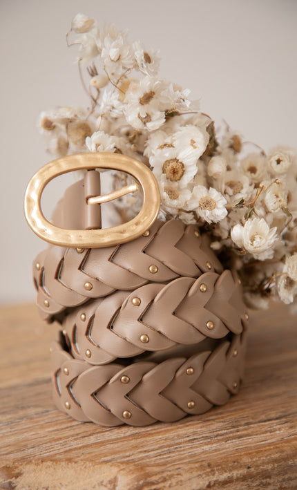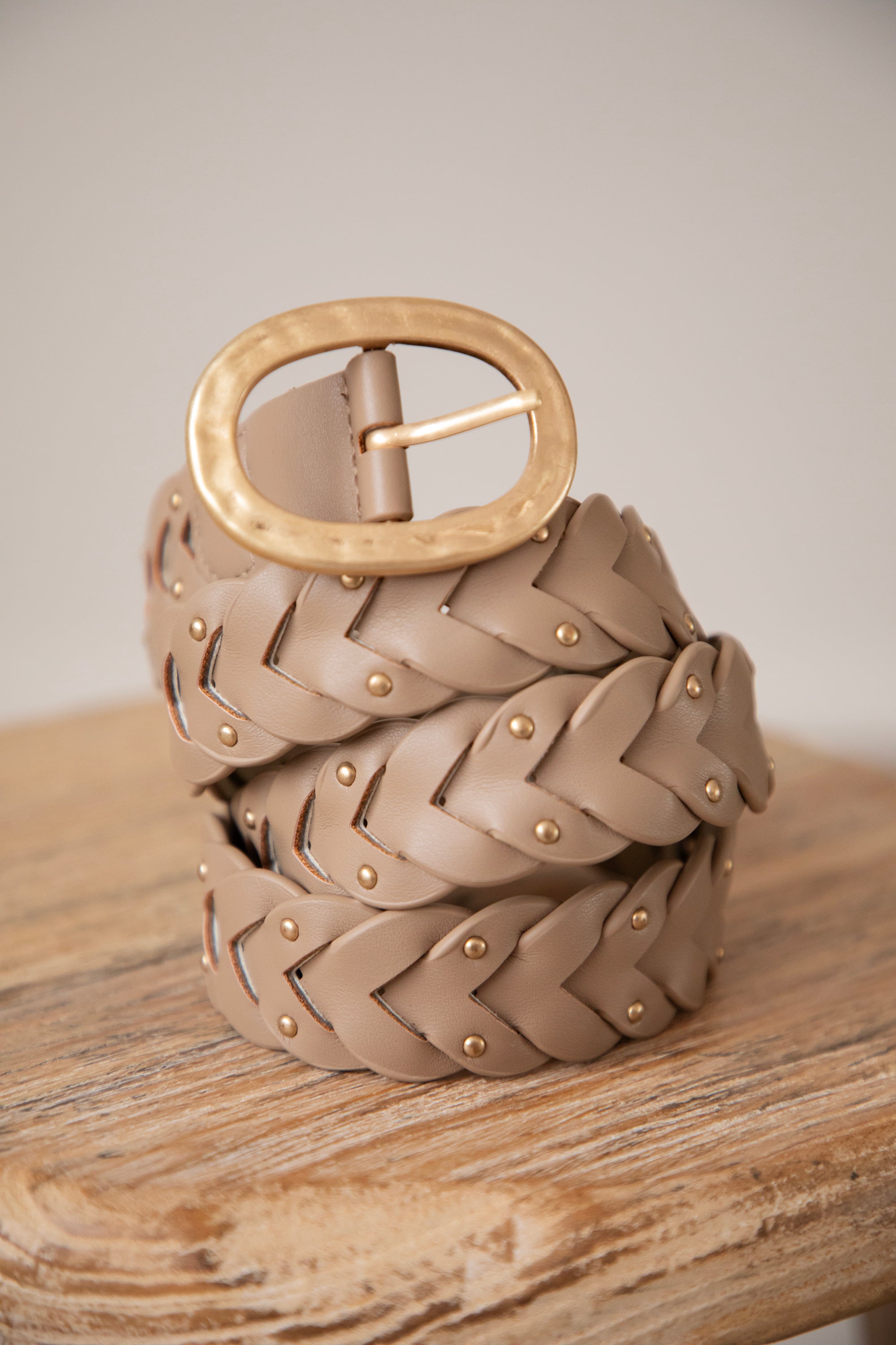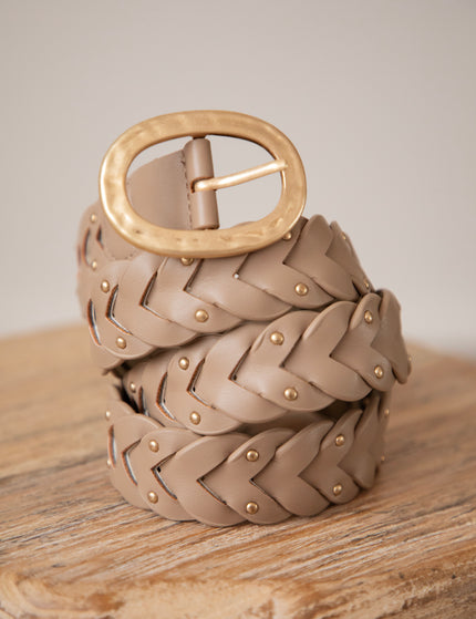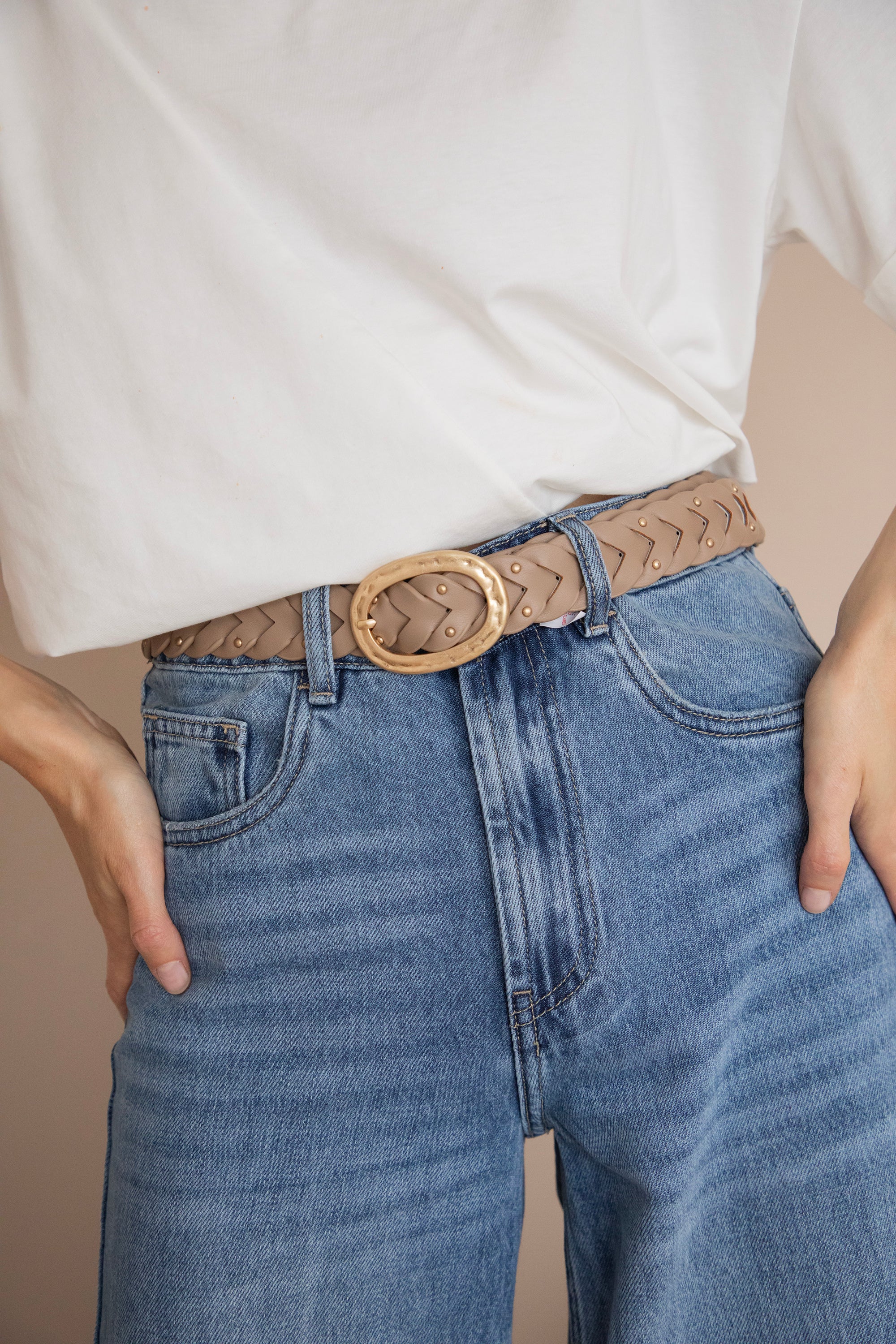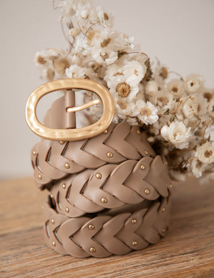 Benadruk je taille met deze super stijlvolle PU-leather gevlochten riem! ✨ Ik wou graag een riem die je gemakkelijk kan combineren... et voila! 'Touch Of Twist' is een echte combi topper door haar tijdloos design, basic kleur en classy uiterlijk 🤩 Hier en daar is de riem geaccentueerd met twee kleine gouden studs, een leuk extraatje!