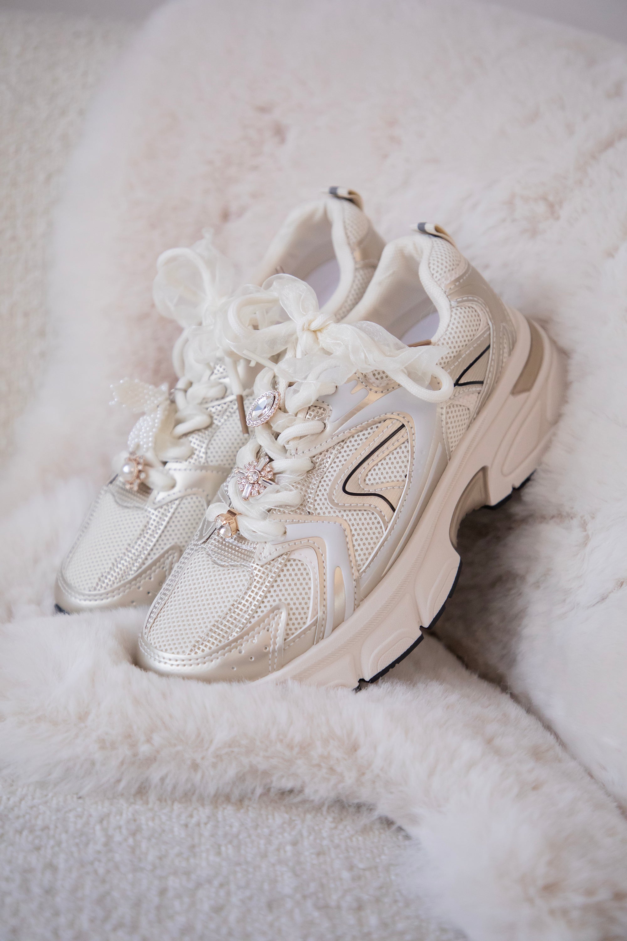 De veters zijn omringd met een zacht tule stofje, wat meteen dat dromerige effect geeft 🤍