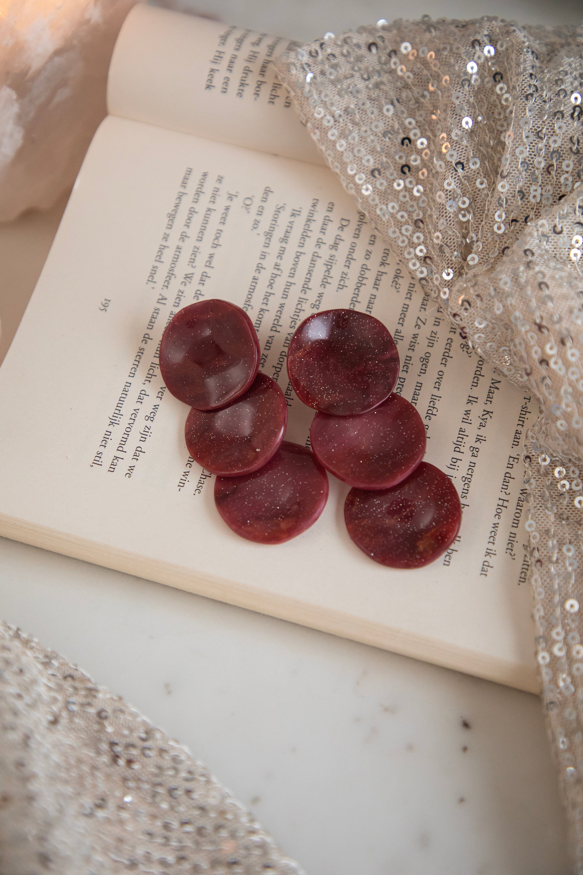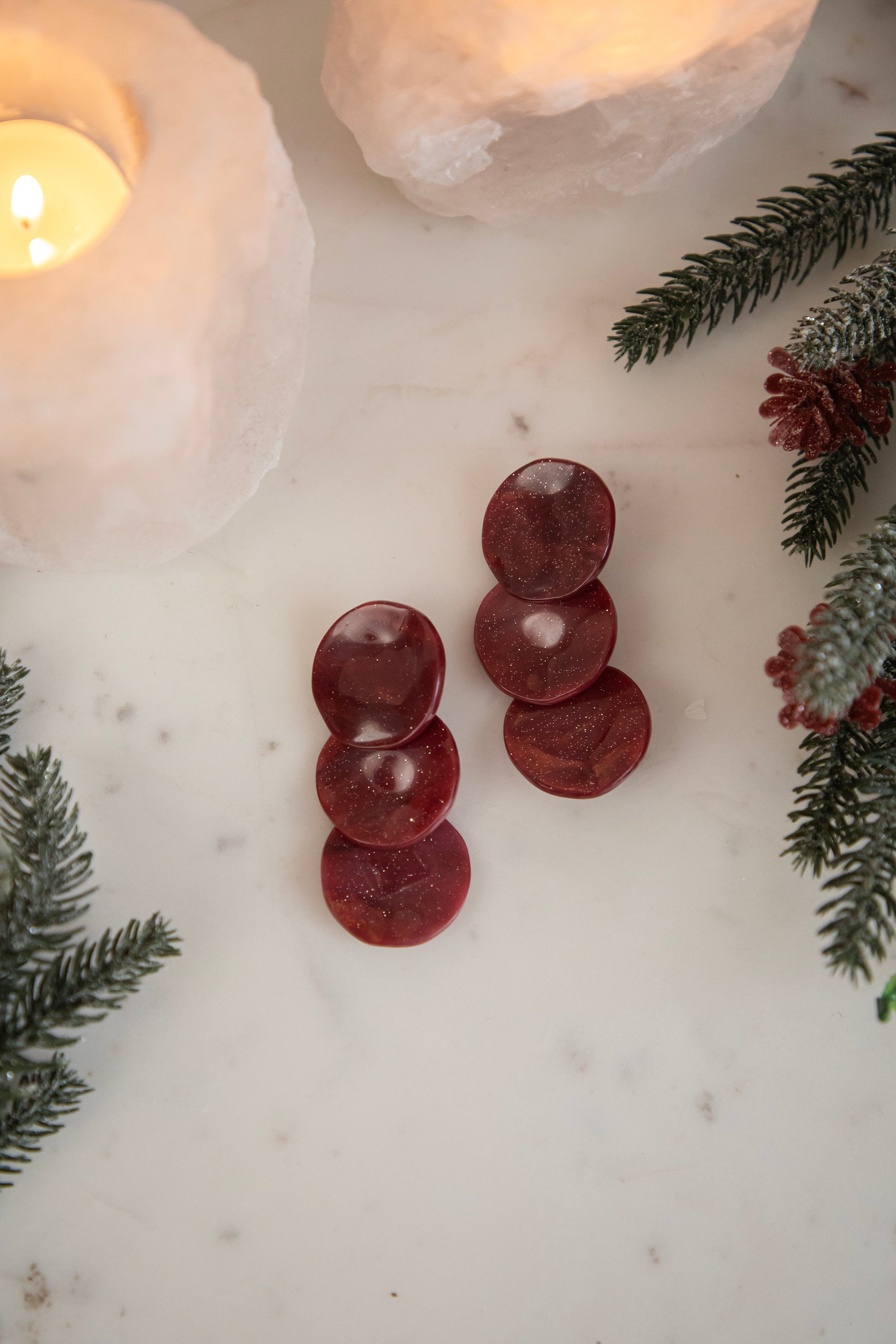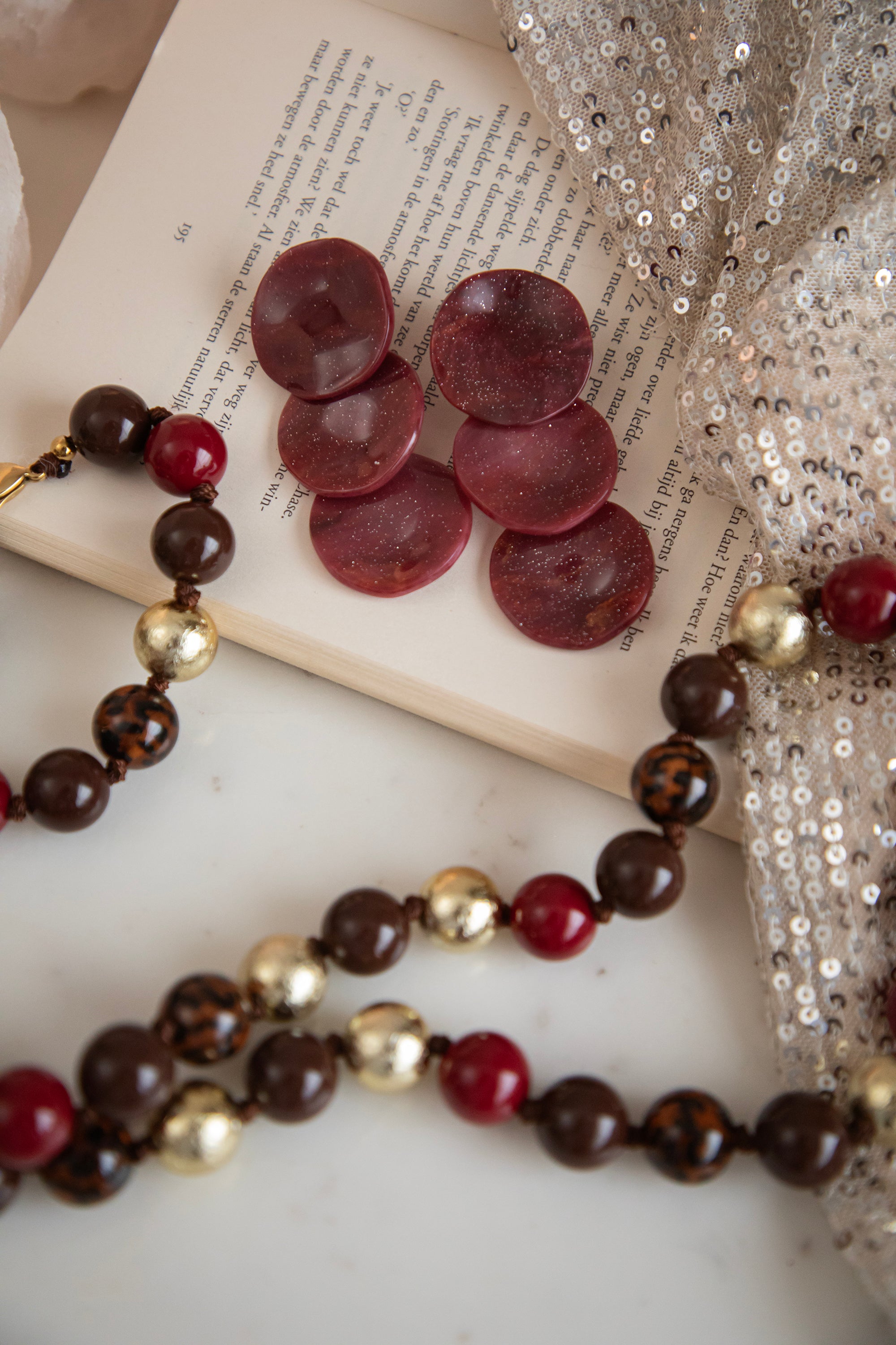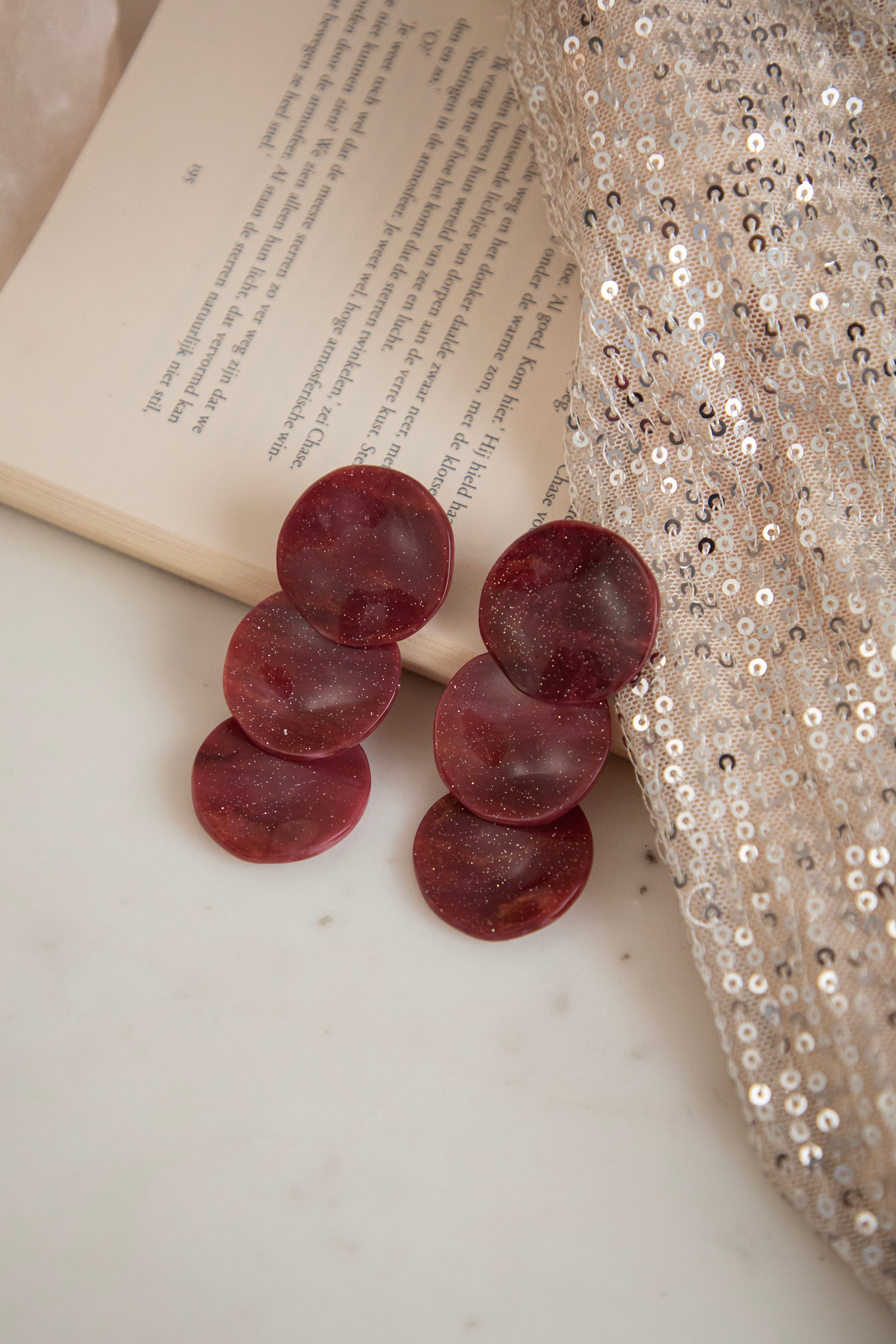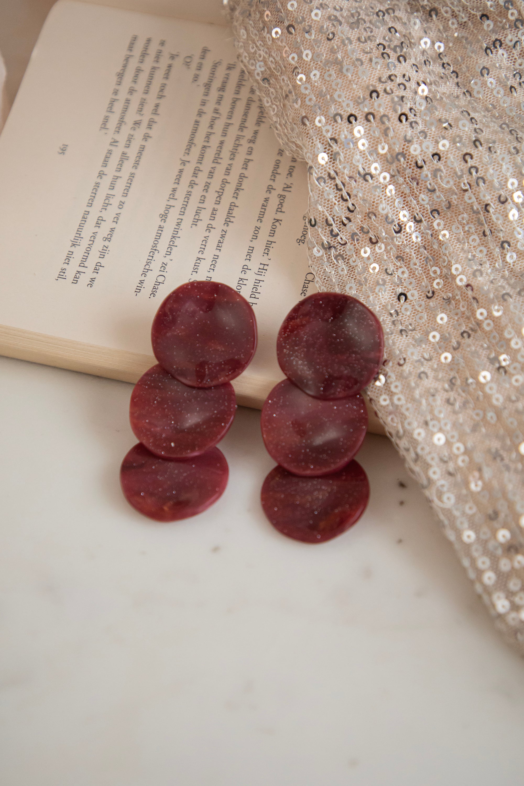 Een echte ear-catcher met een classy touch! Deze Triple Twinkle oorbellen bestaan uit drie ronde details in een warme bordeaux tint, subtiel opgesmukt met een zachte glinstering 💫 De rondes zijn aan elkaar verbonden in een vloeiende, elegante lijn.