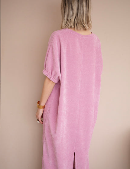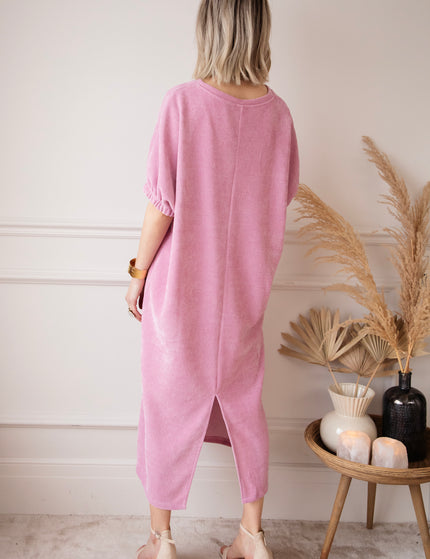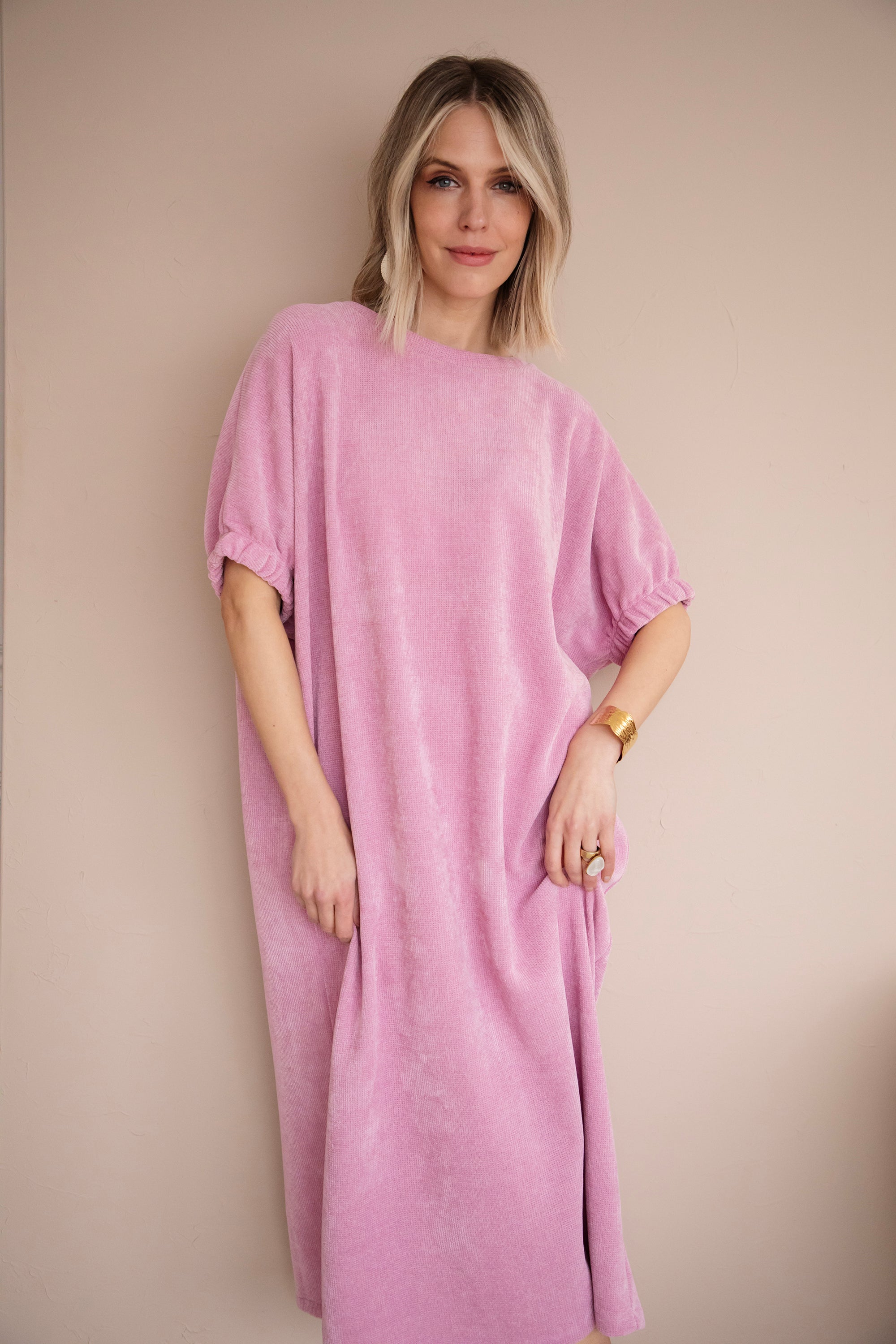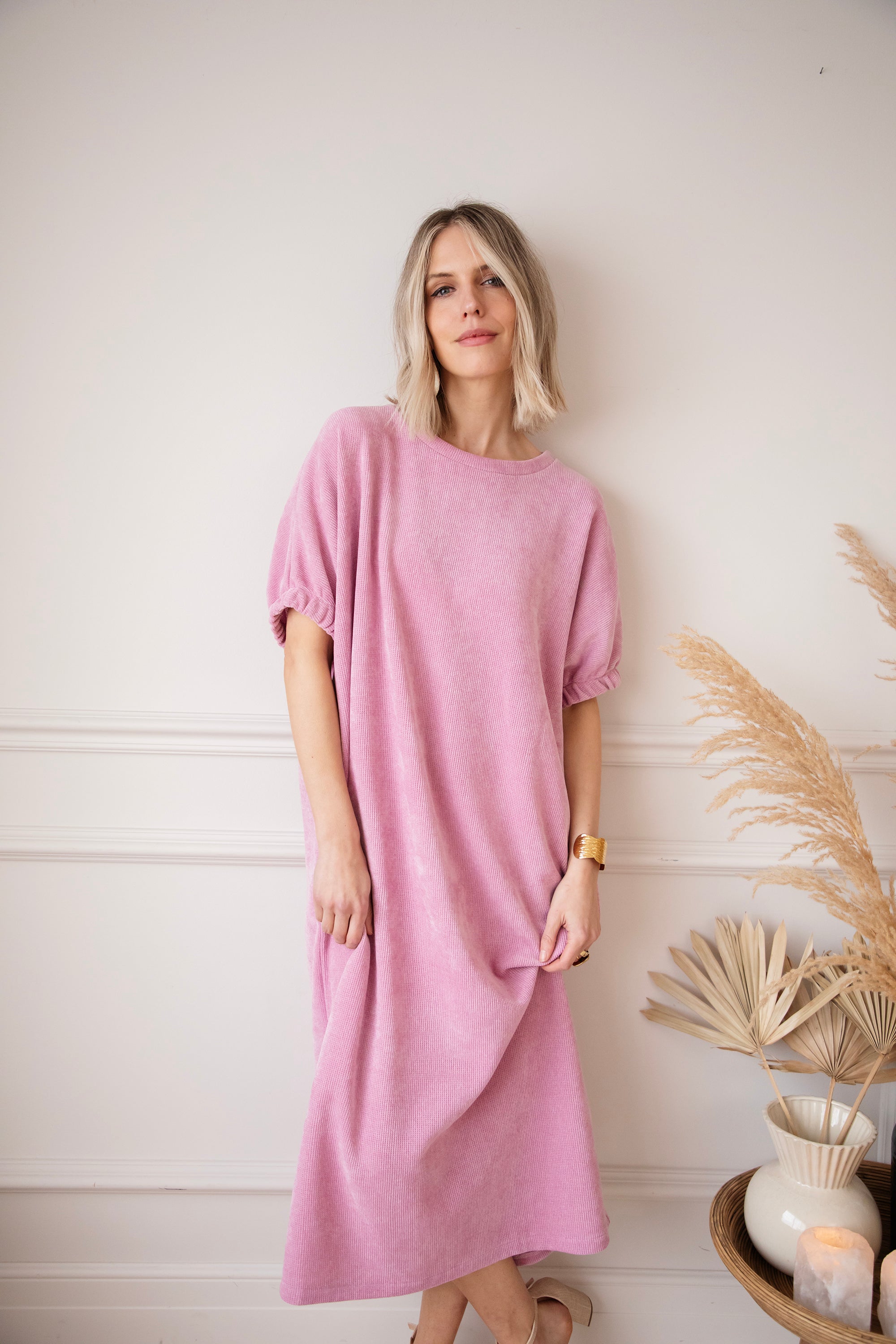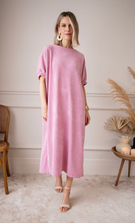 Het zusje van onze Viva Velvet dress! Na het grote succes van onze Viva Velvet moest ik ook deze Valery in de collectie halen, even comfortabel en zacht maar met andere mouwdetails! Deze rekken leuk mee dankzij een elastiek. Maakt dit modelletje weer iets specialer 🎀 Ook geen split aan de zijkant maar de achterkant!
