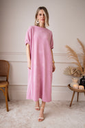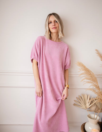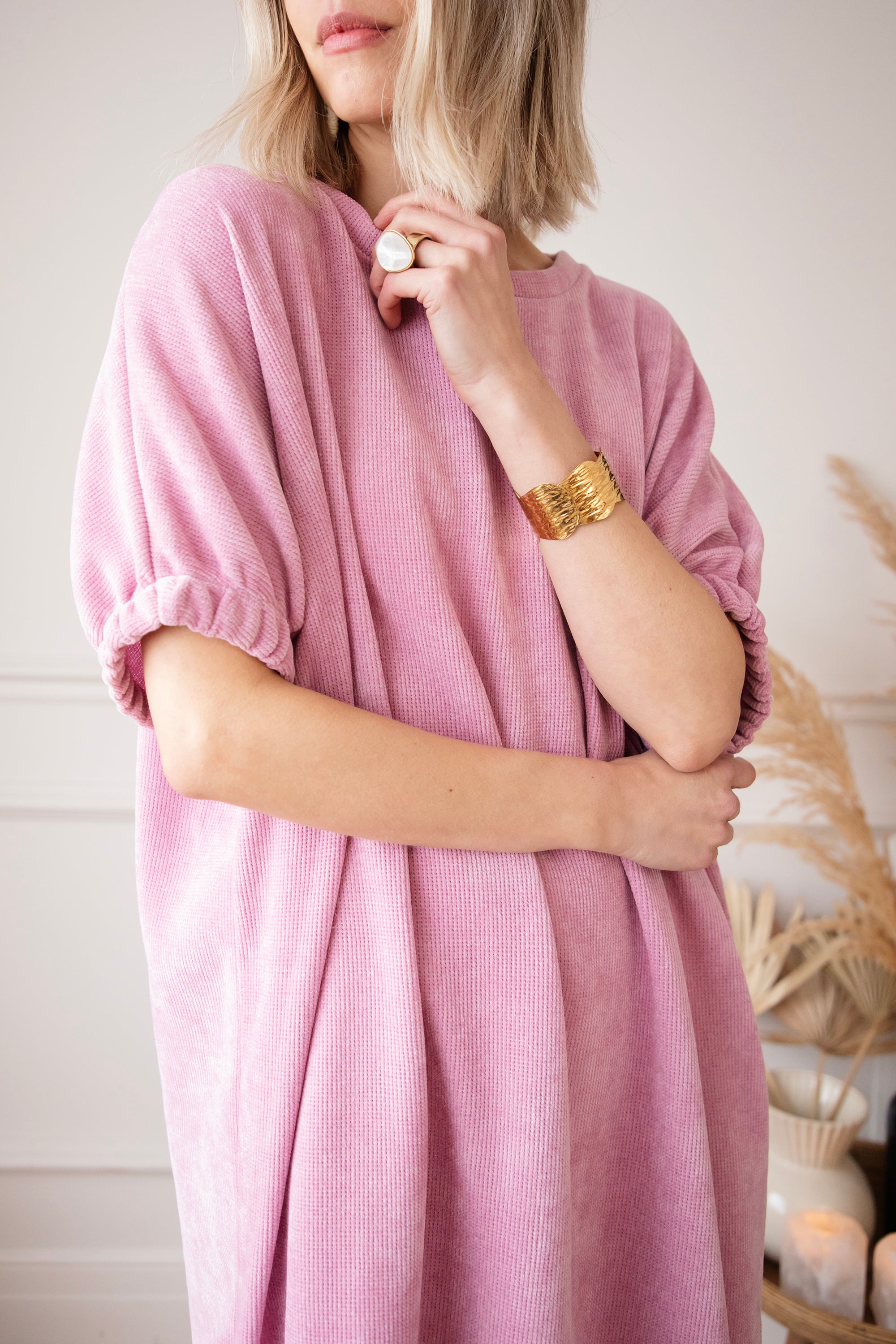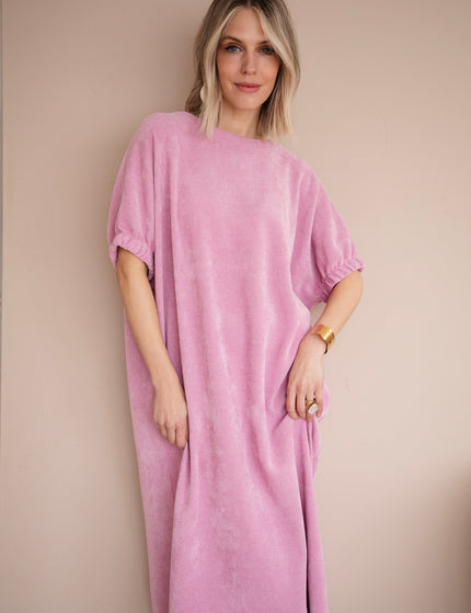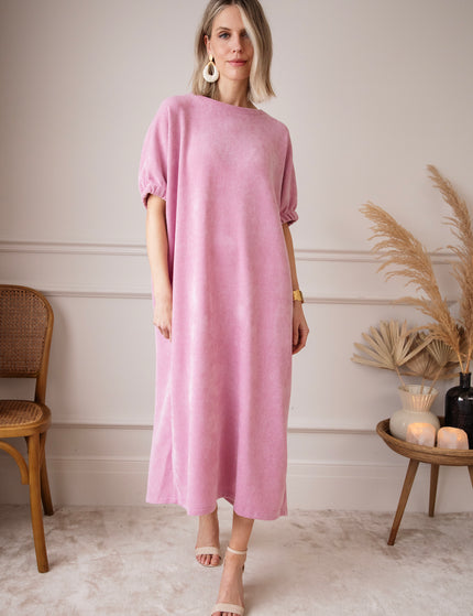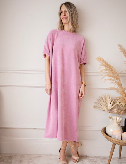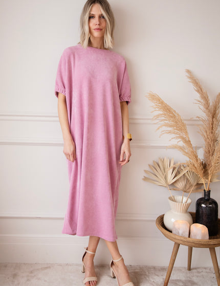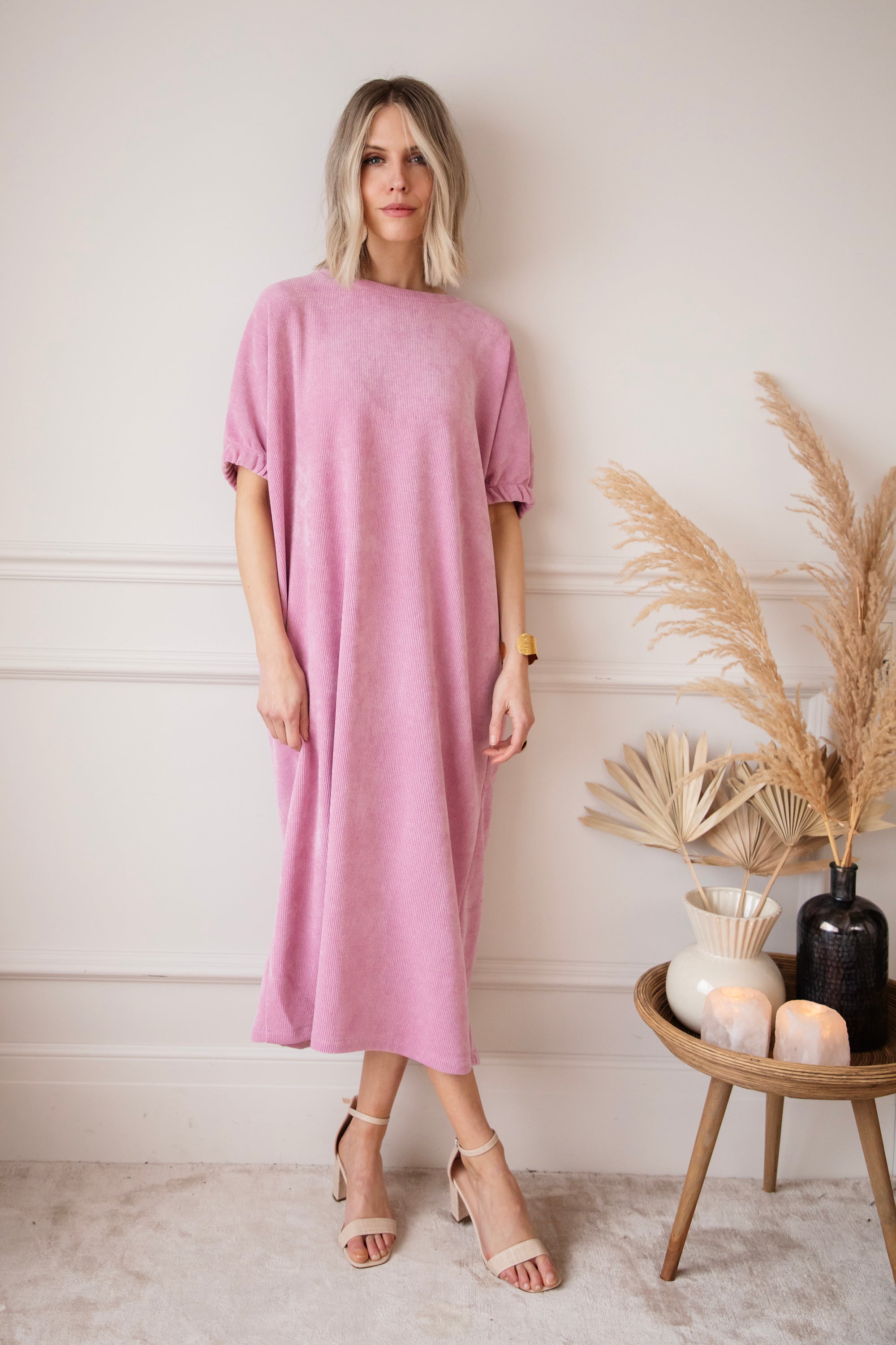 Het zusje van onze Viva Velvet dress! Na het grote succes van onze Viva Velvet moest ik ook deze Valery in de collectie halen, even comfortabel en zacht maar met andere mouwdetails! Deze rekken leuk mee dankzij een elastiek. Maakt dit modelletje weer iets specialer 🎀 Ook geen split aan de zijkant maar de achterkant!