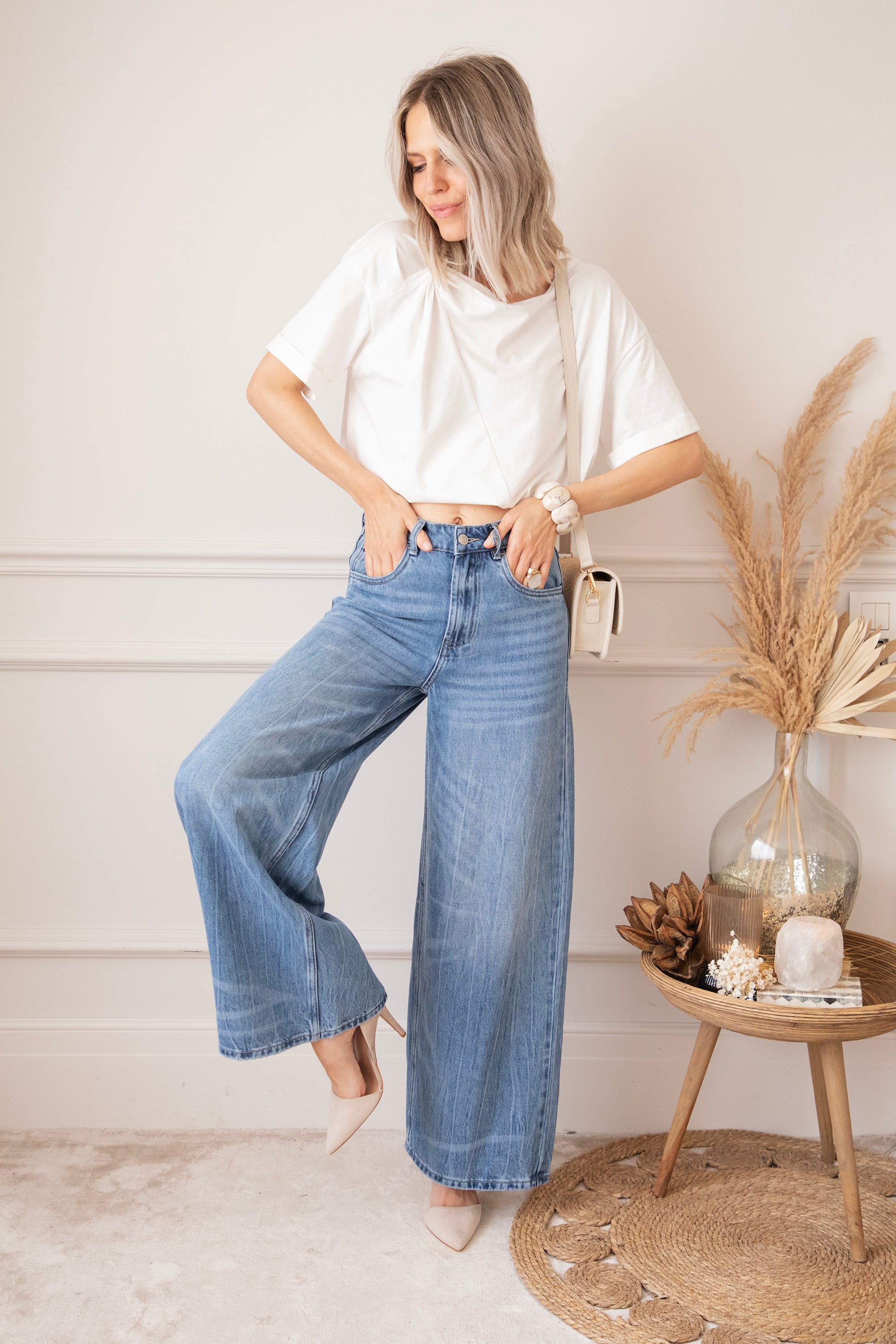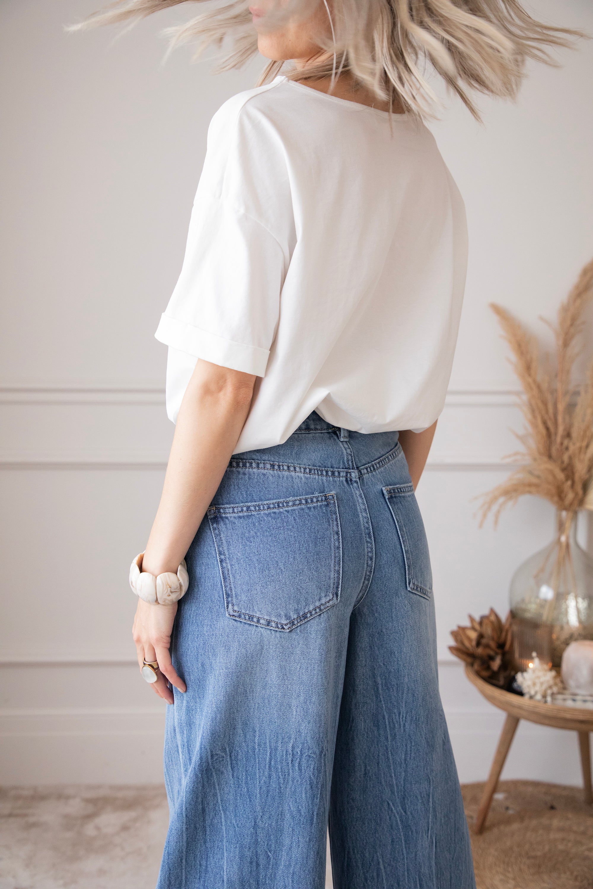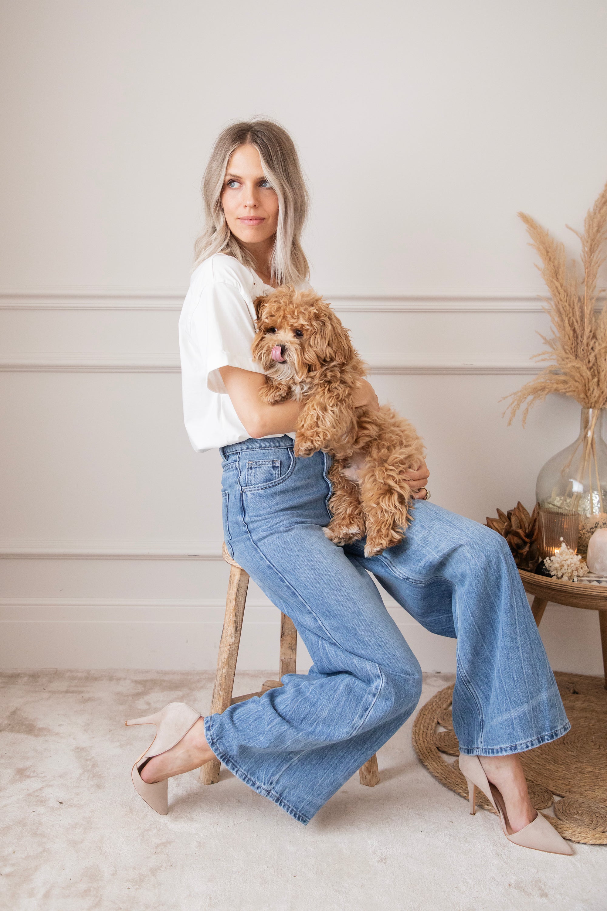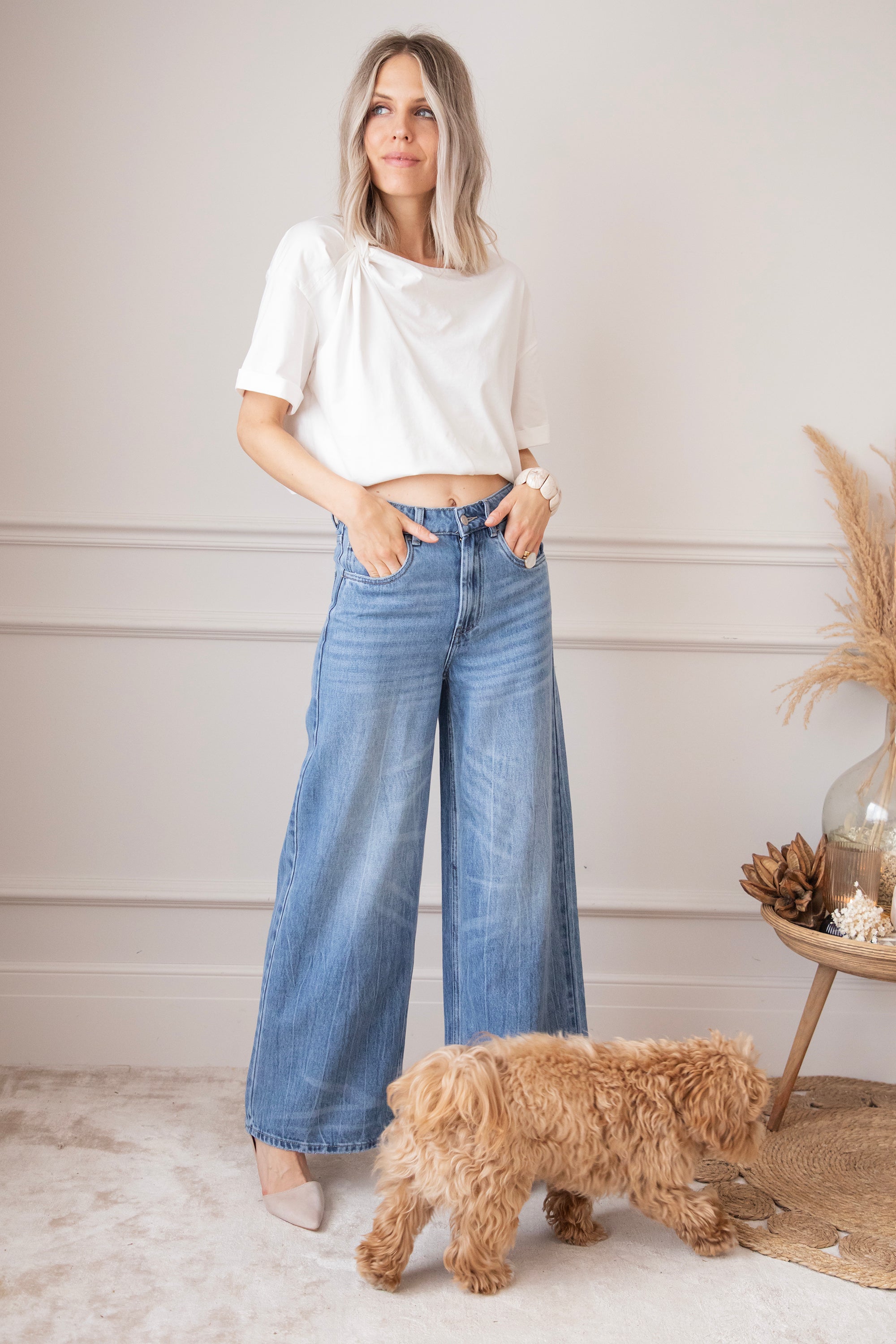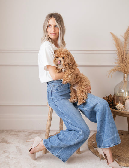 Een wijder modelletje heef toch stiekem mijn voorkeur! Ze lopen zo comfortabel en de aansluitende taille met de wijde pijpen zorgt gewoon voor een optisch verlengd effect en dat willen we hihi 🤭 'Wide Wanted' lijkt op 'The Wide Way' maar heeft iets meer washed details! Je ziet hier en daar lichtere strepen terug aan de pijpen, dat geeft net die leuke twist! Hihi deze broek is ook goedgekeurd door James hihihi! 🐶