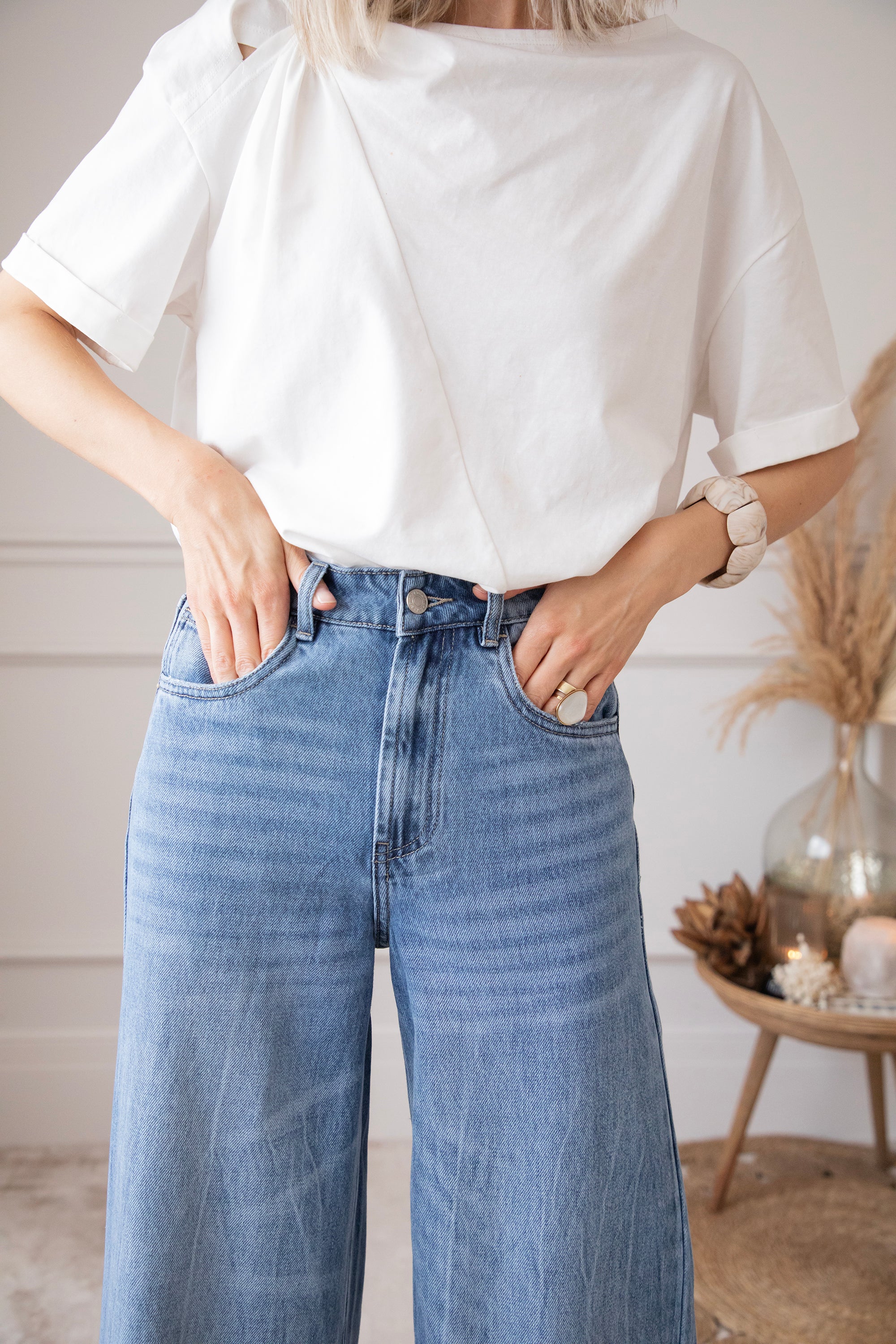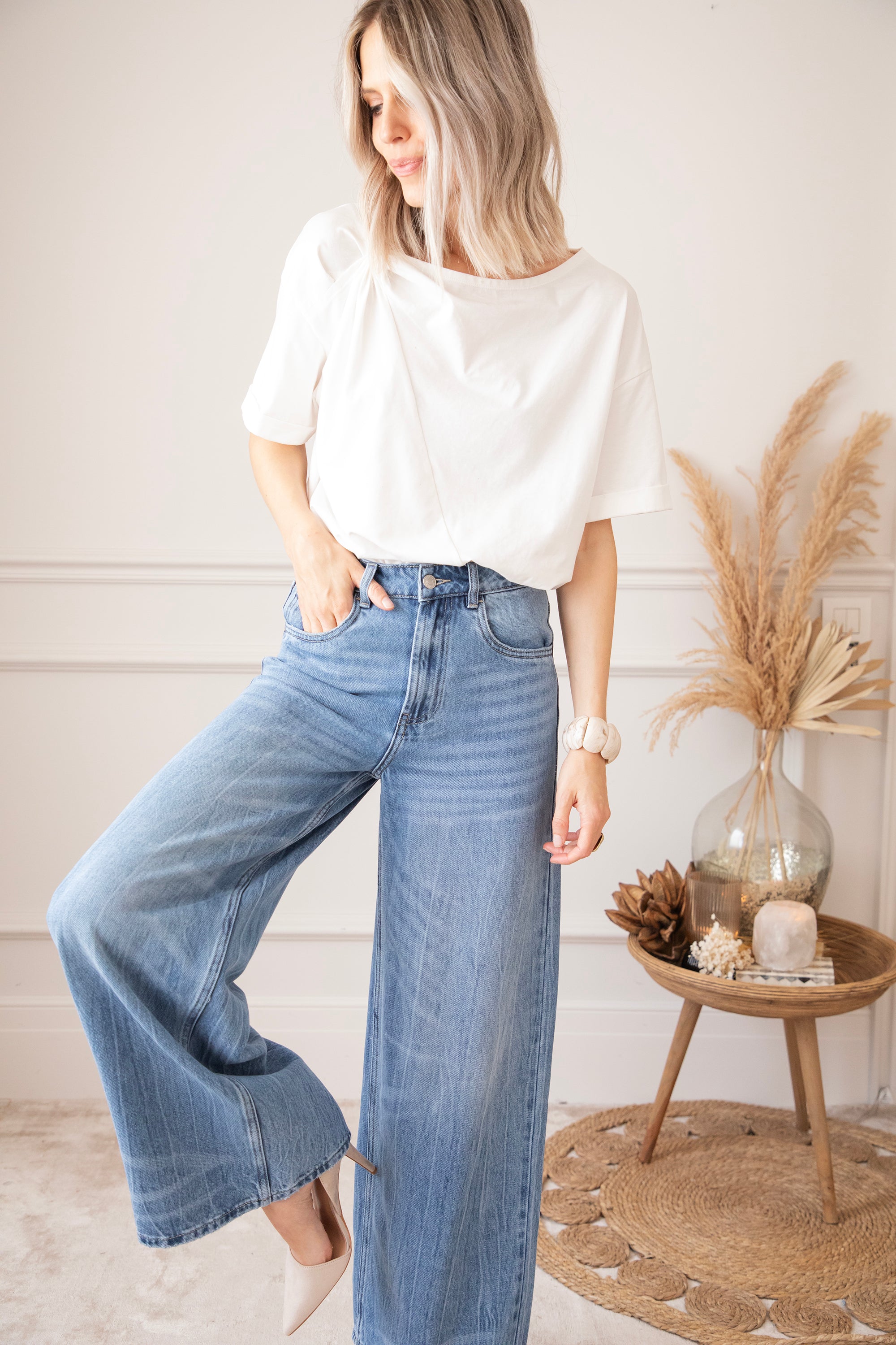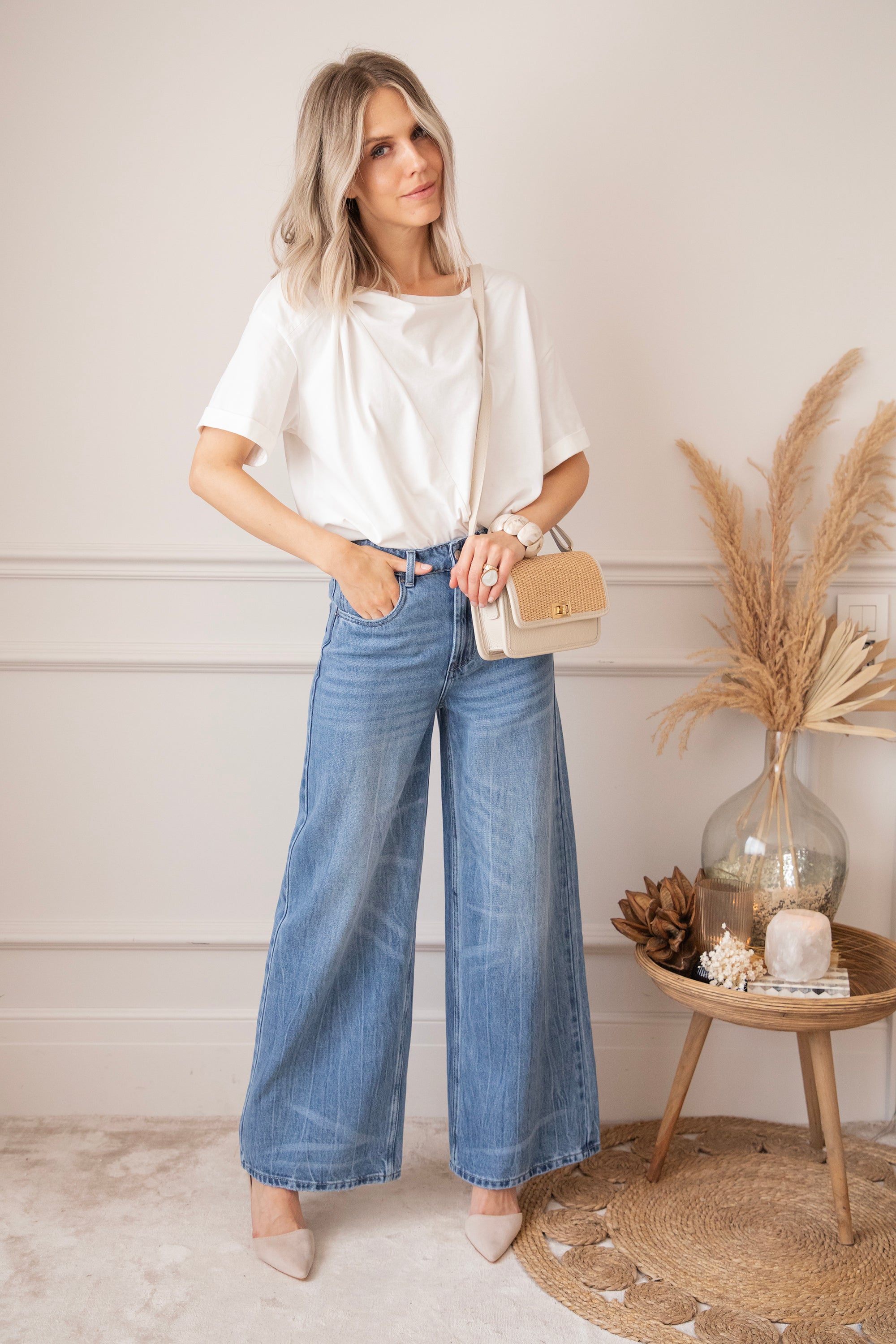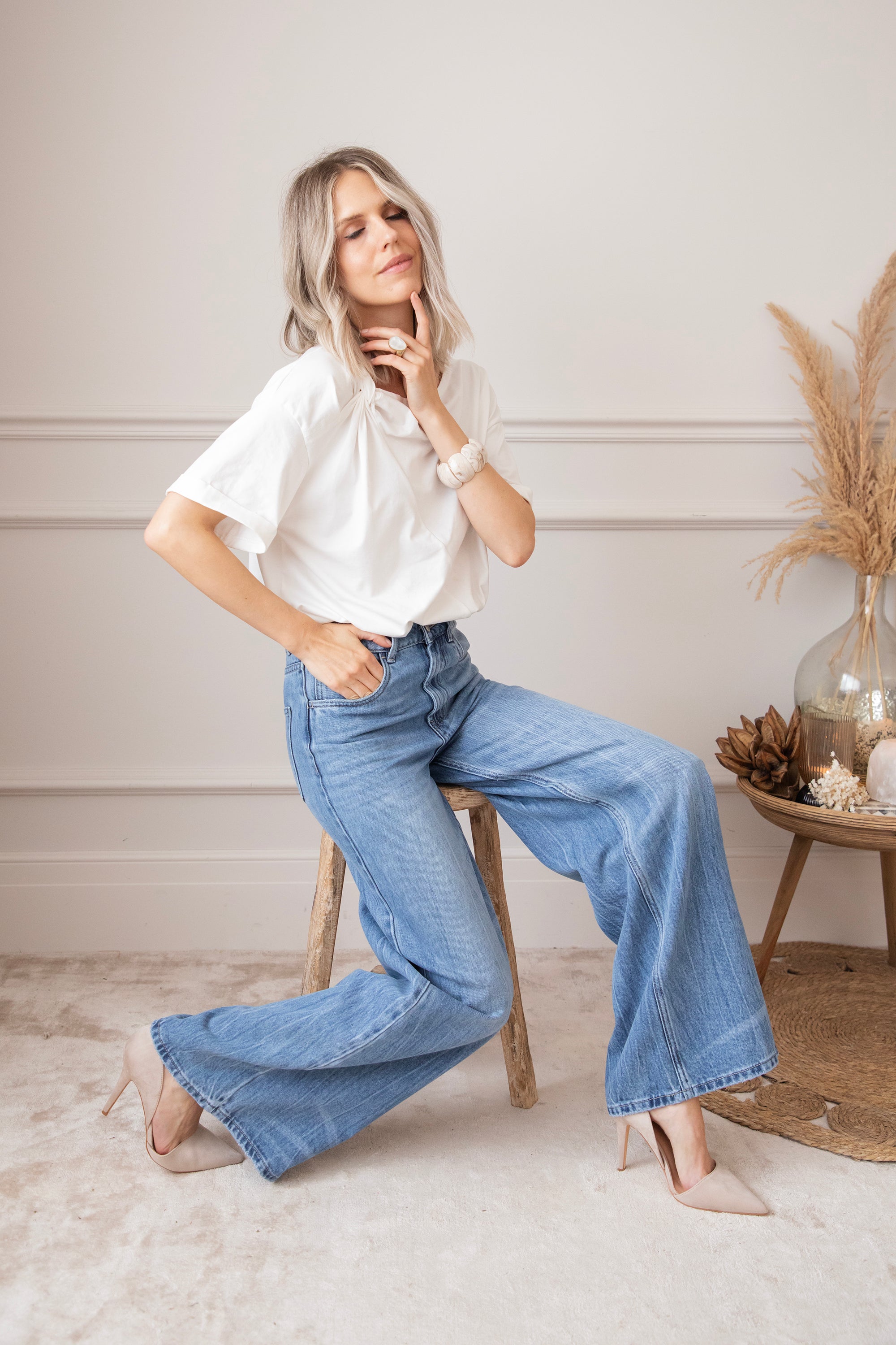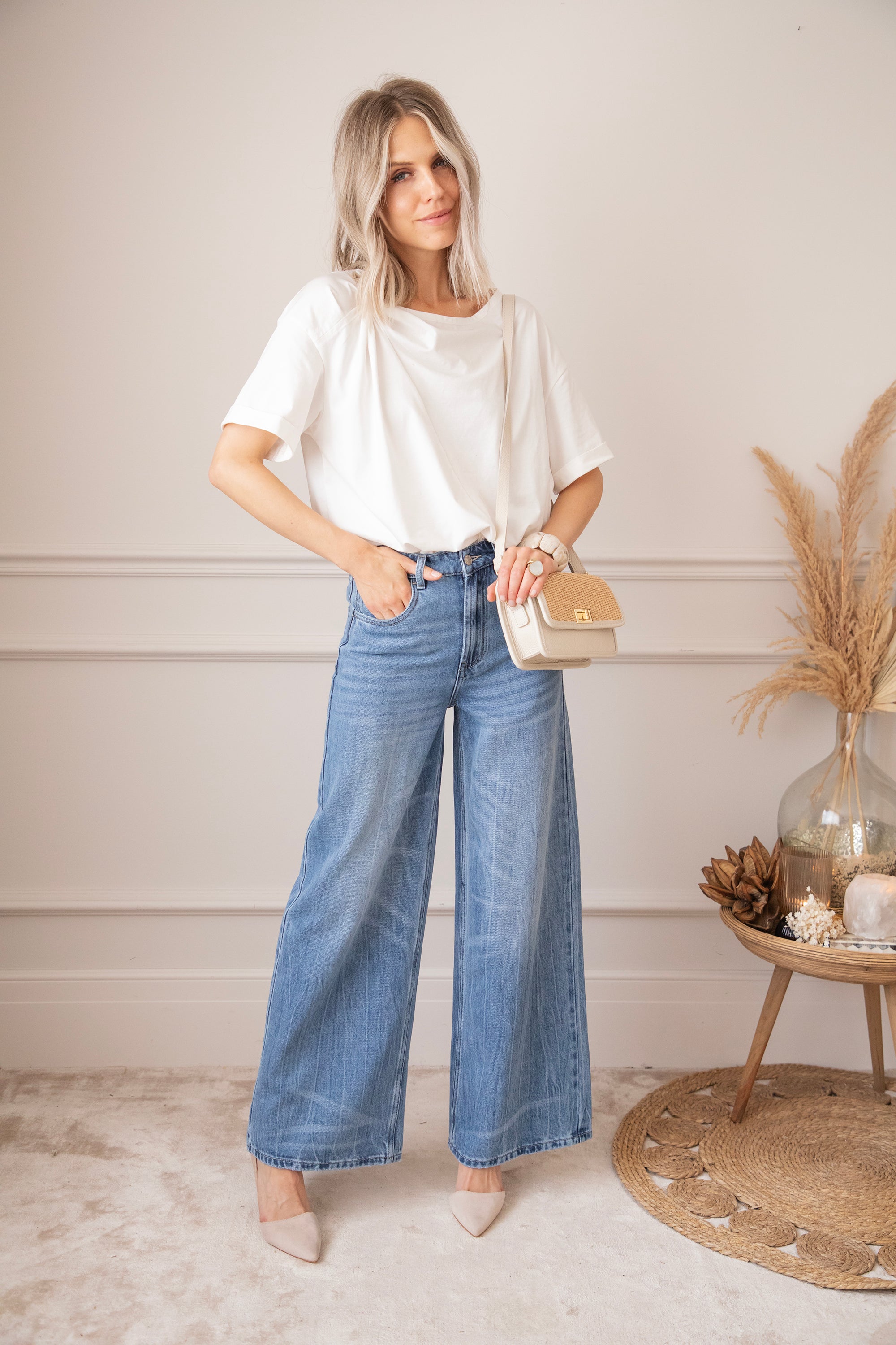 Een wijder modelletje heef toch stiekem mijn voorkeur! Ze lopen zo comfortabel en de aansluitende taille met de wijde pijpen zorgt gewoon voor een optisch verlengd effect en dat willen we hihi 🤭 'Wide Wanted' lijkt op 'The Wide Way' maar heeft iets meer washed details! Je ziet hier en daar lichtere strepen terug aan de pijpen, dat geeft net die leuke twist! Hihi deze broek is ook goedgekeurd door James hihihi! 🐶